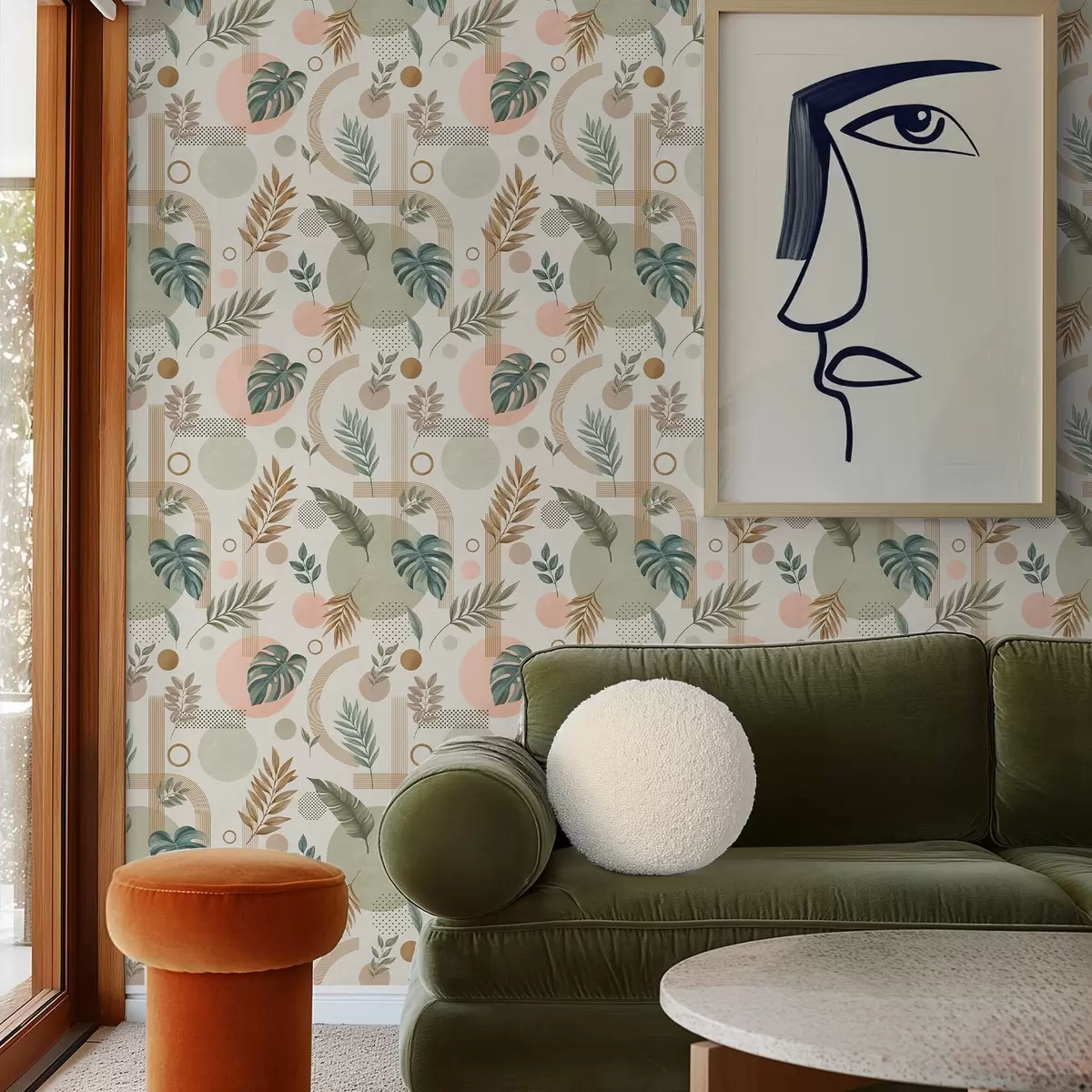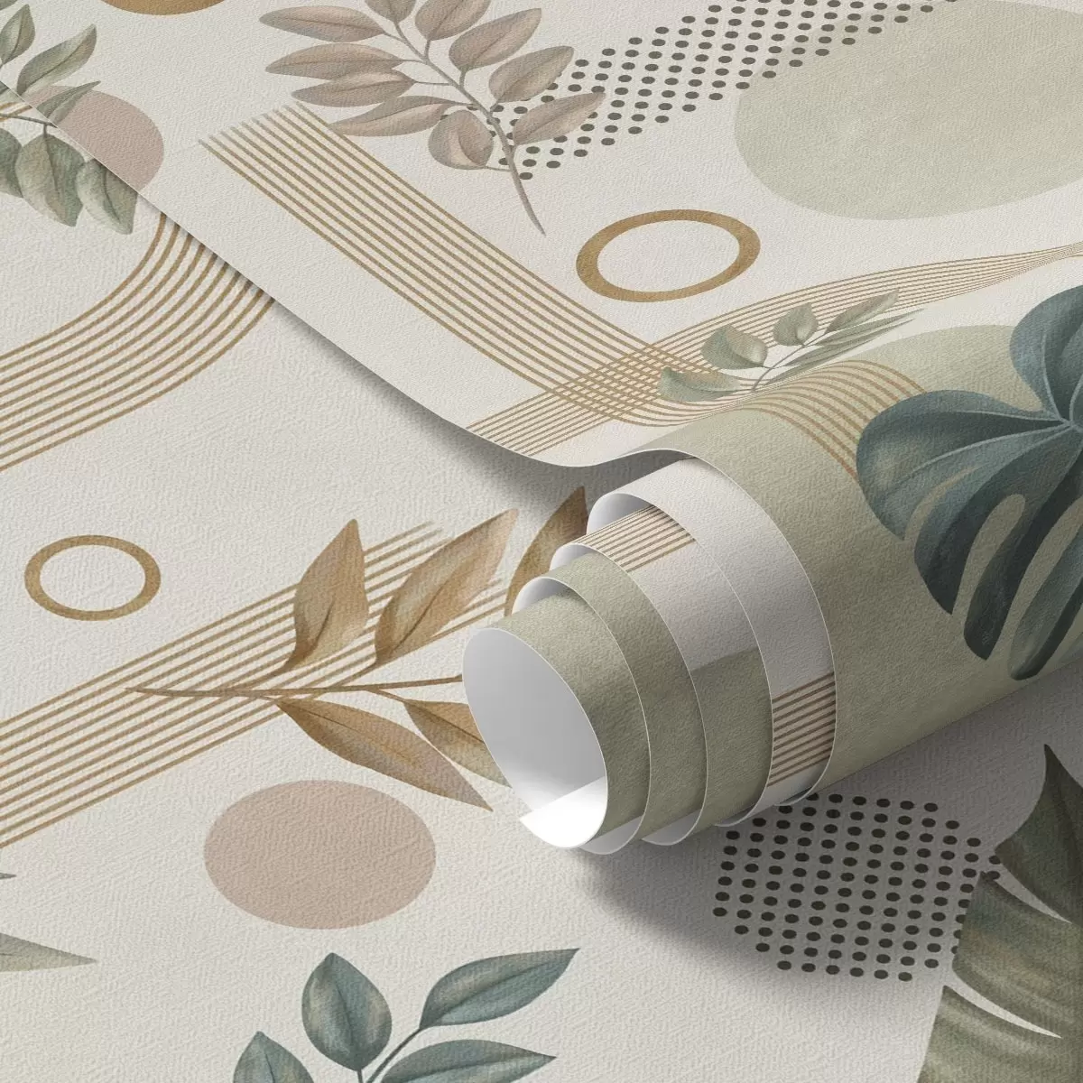 Carta da parati Foglie e forme geometriche in tonalità calde e tranquille Nr. a00677