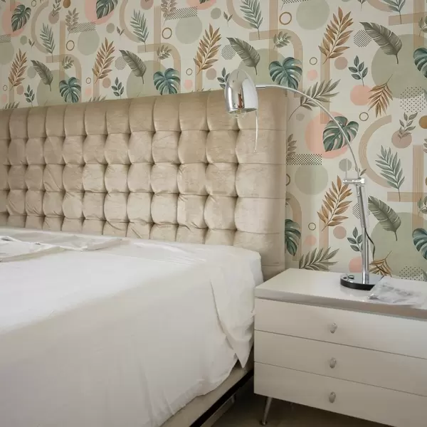 Carta da parati Foglie e forme geometriche in tonalità calde e tranquille Nr. a00677