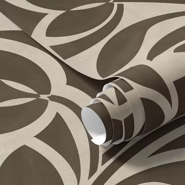 Carta da parati Sagome geometriche di foglie, marrone scuro su beige Nr. a00679v1