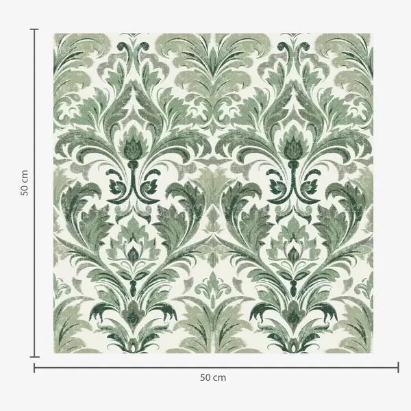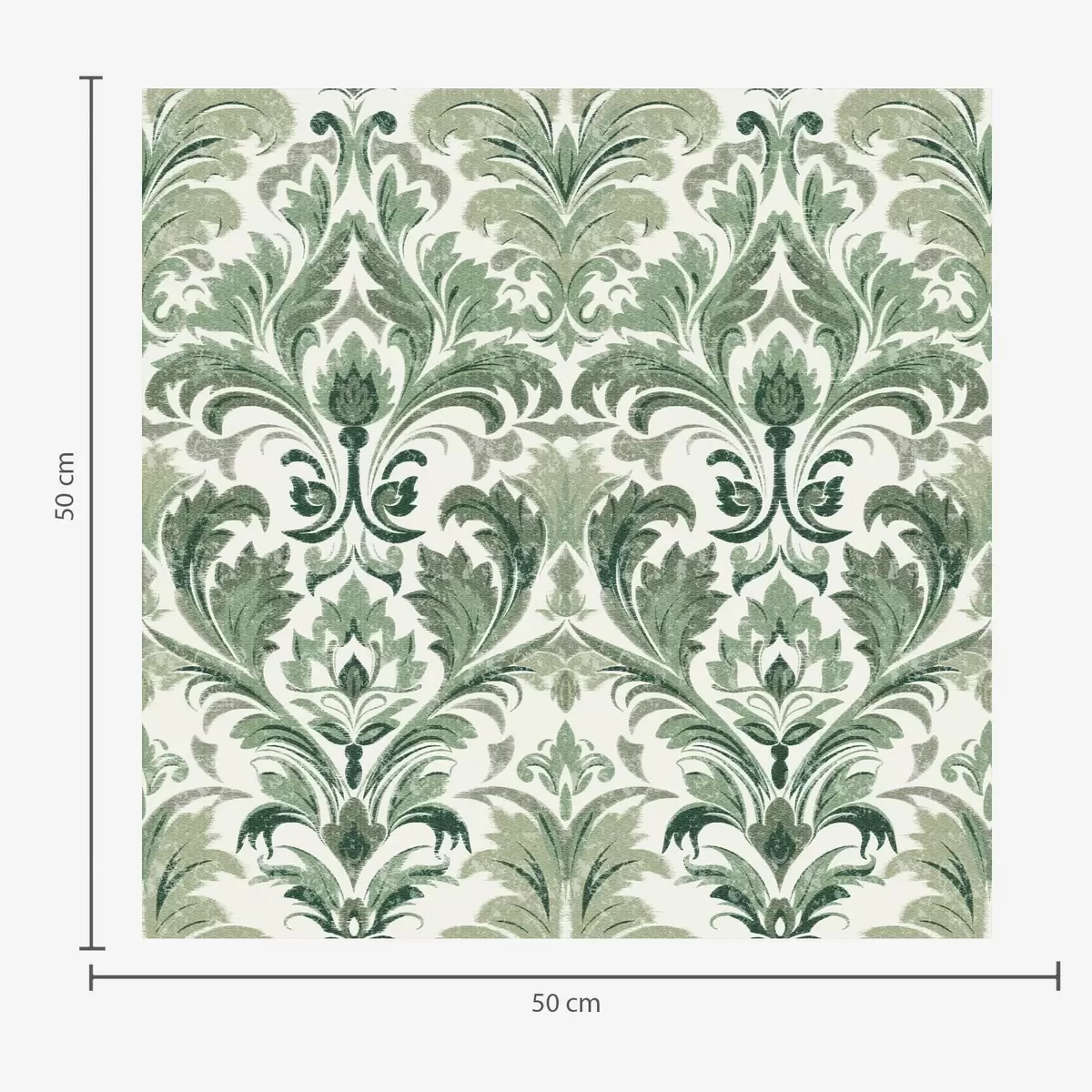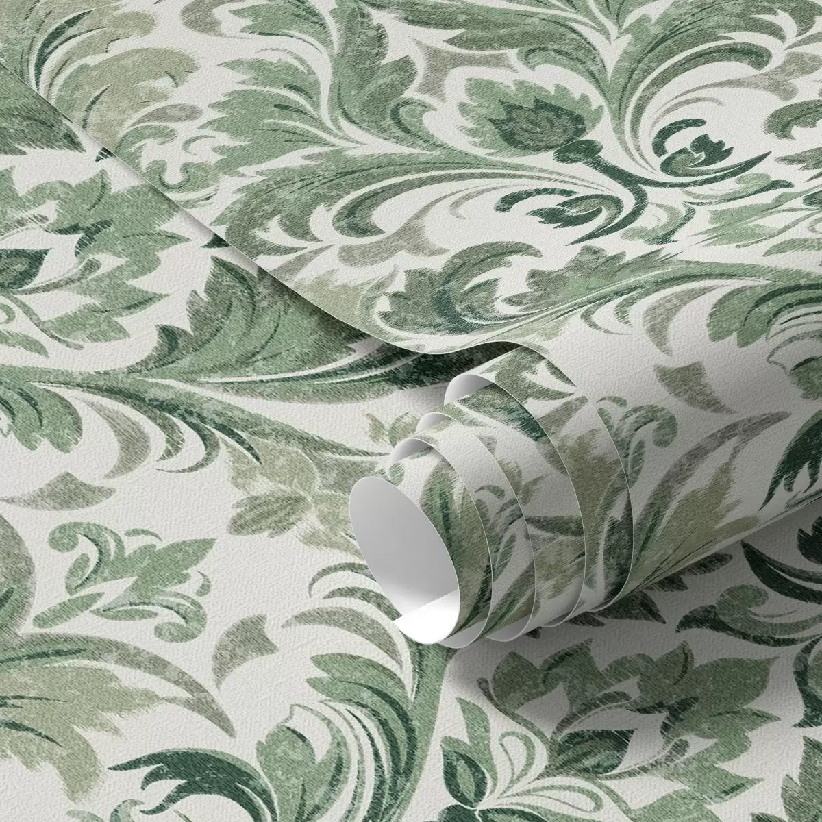 Carta da parati Damasco verde con texture in rilievo su sfondo chiaro Nr. a00692