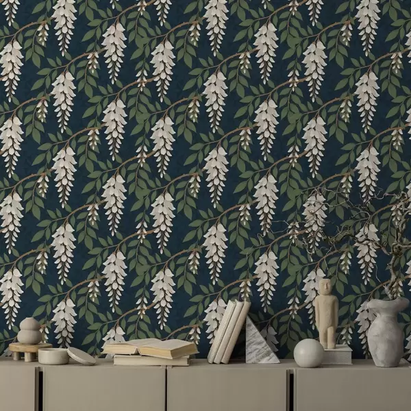Carta da parati Glicine color avorio su sfondo verde acqua intenso Nr. a00694v1