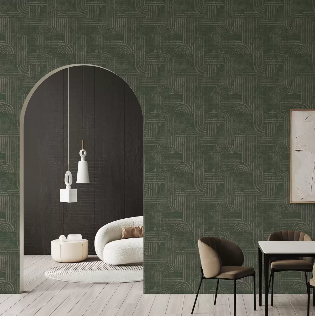 Carta da parati Motivo geometrico con archi in una palette di colori verdi Nr. a00697
