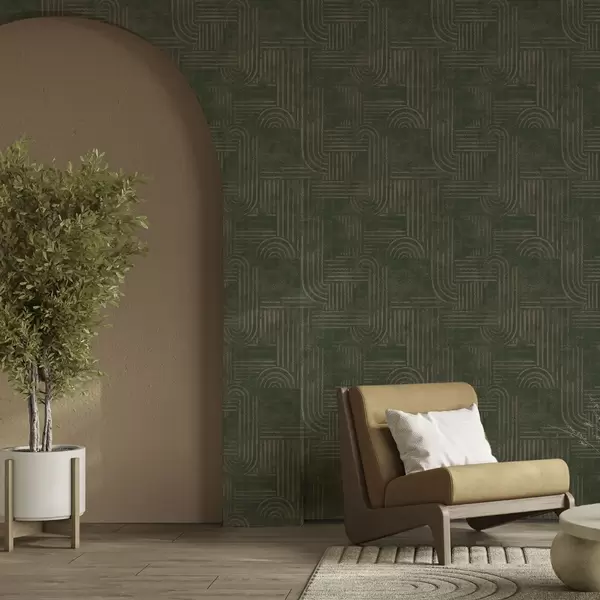 Carta da parati Motivo geometrico con archi in una palette di colori verdi Nr. a00697