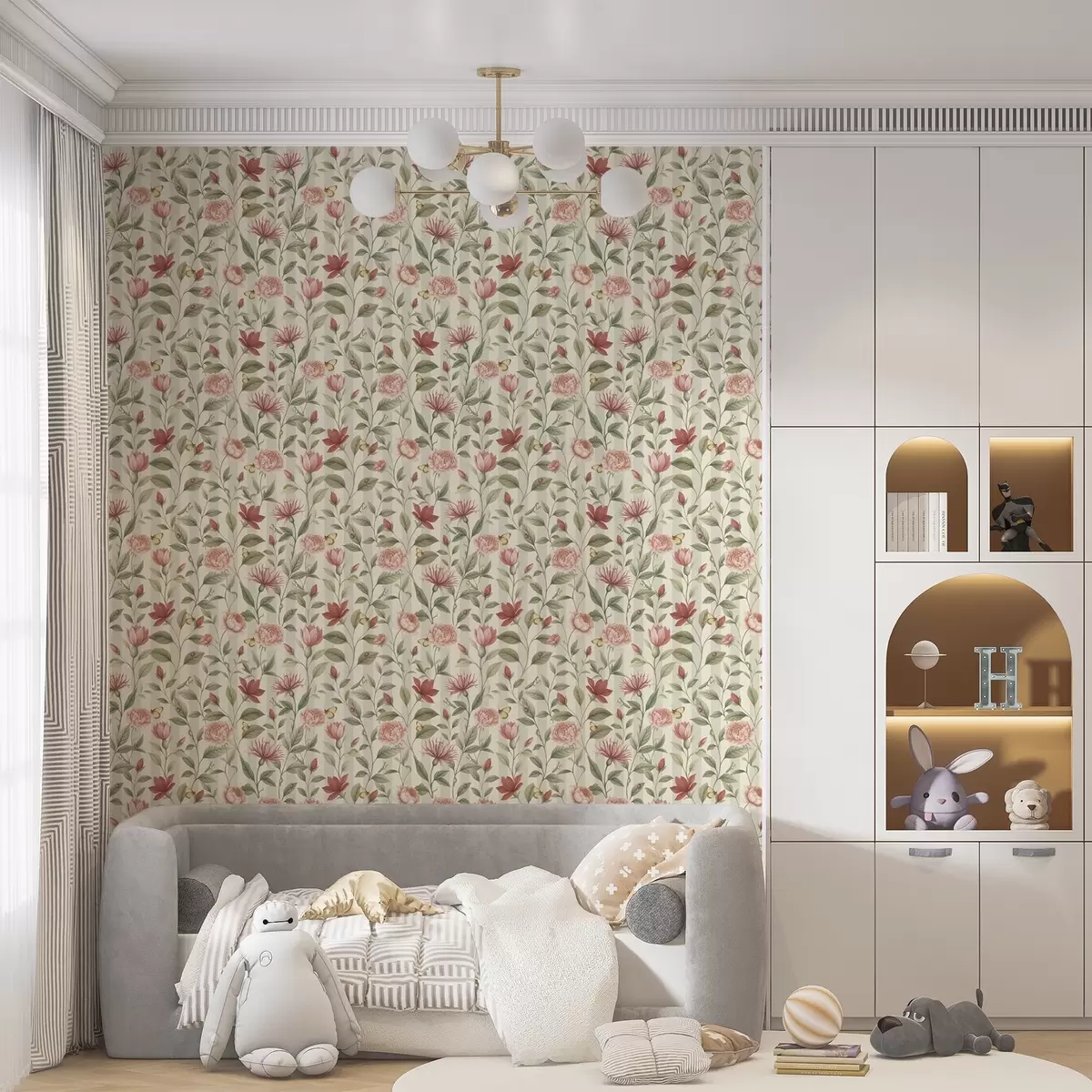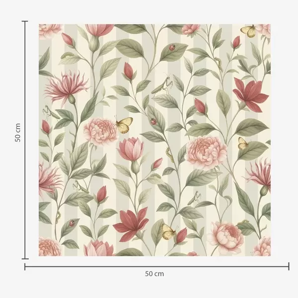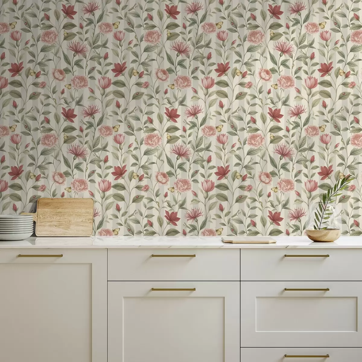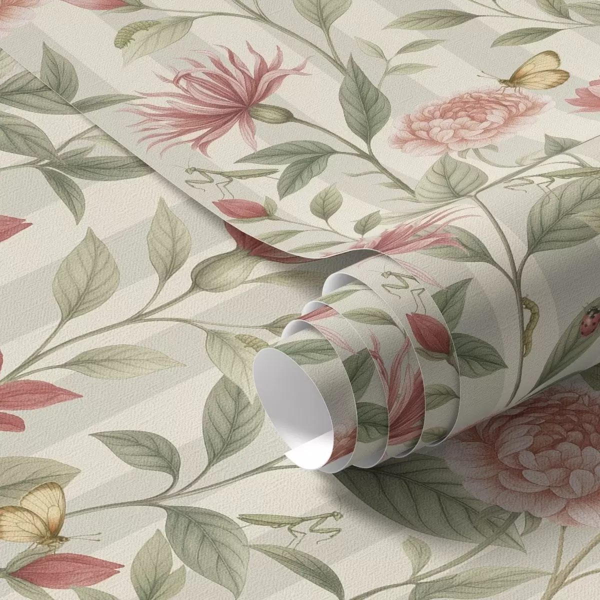 Carta da parati Steli floreali con farfalle su sfondo chiaro Nr. a00698