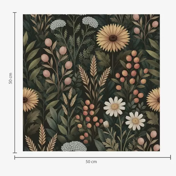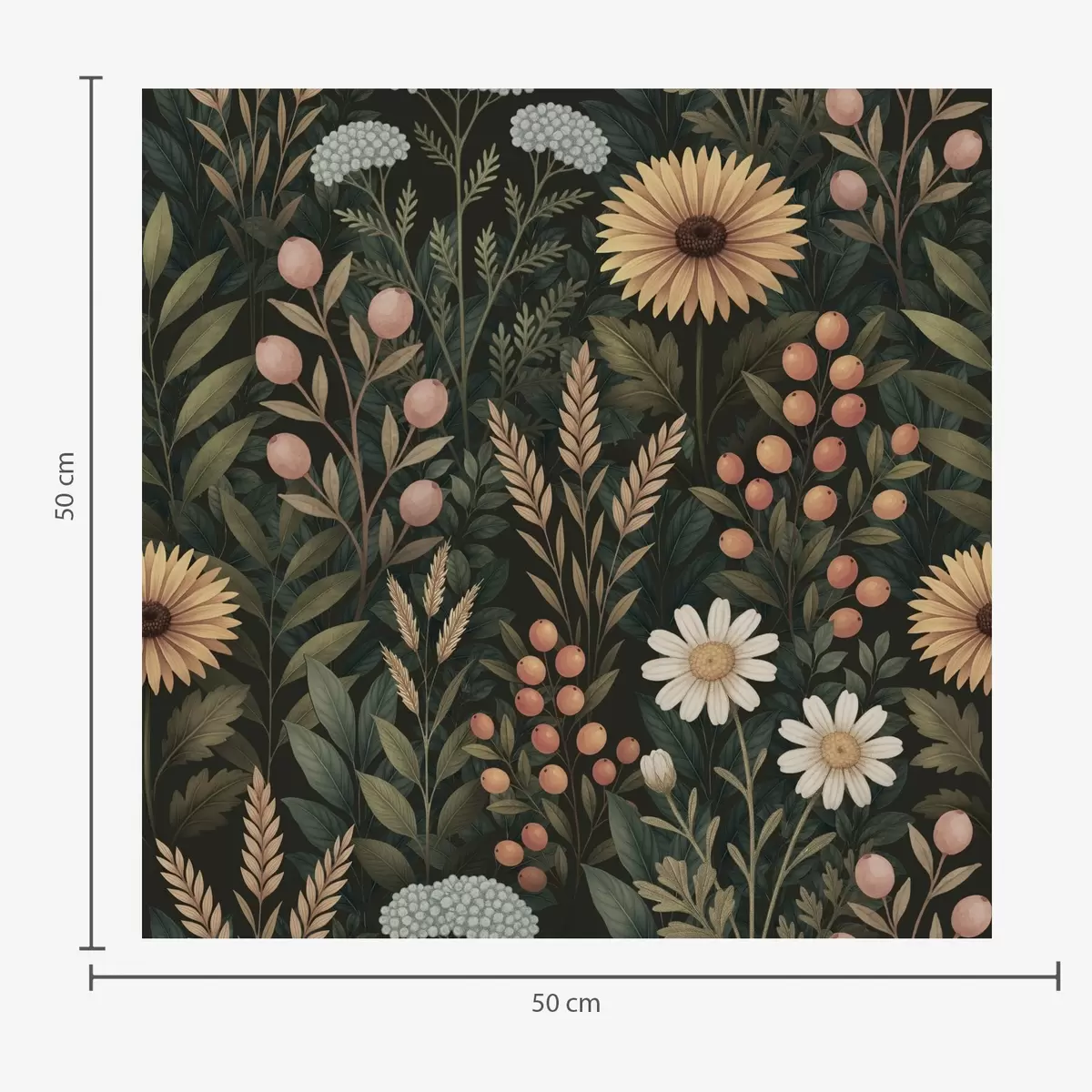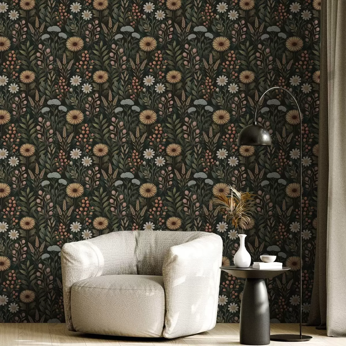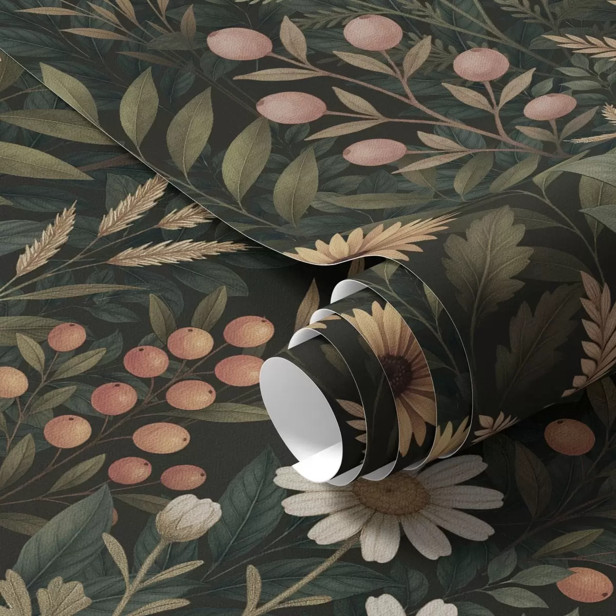 Carta da parati Fiori selvatici e bacche su sfondo scuro, ornamento naturale Nr. a00707