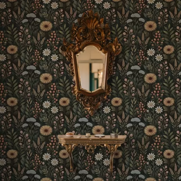 Carta da parati Fiori selvatici e bacche su sfondo scuro, ornamento naturale Nr. a00707