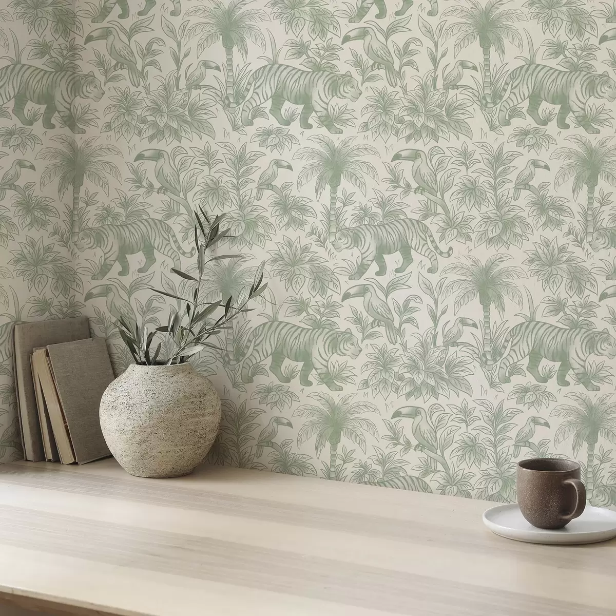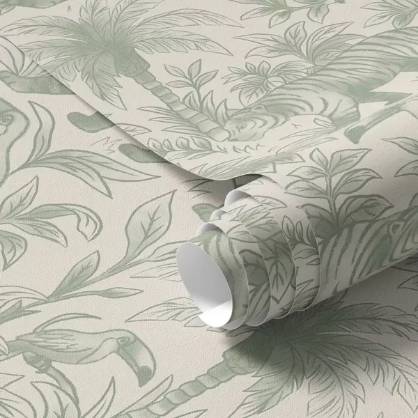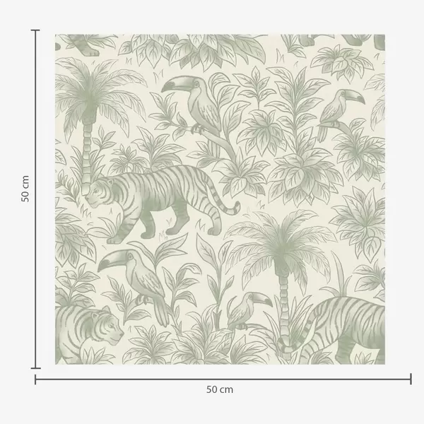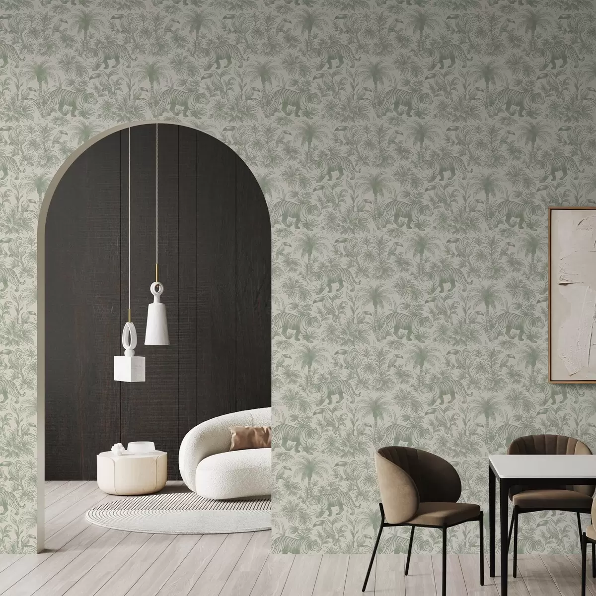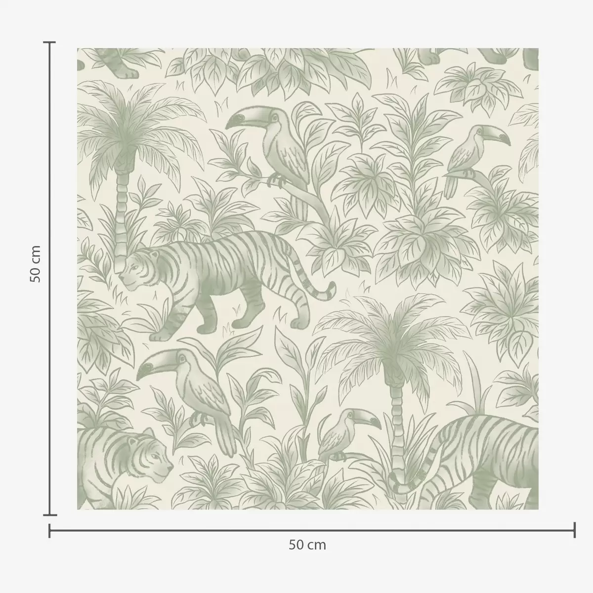 Carta da parati Tigri e uccelli tropicali tra le palme su uno sfondo chiaro Nr. a00711