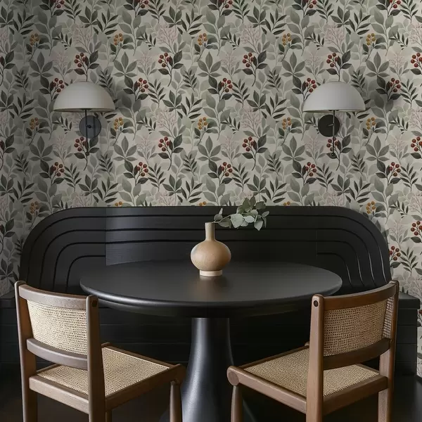 Carta da parati Foglie con bacche, sfondo chiaro Nr. a00713