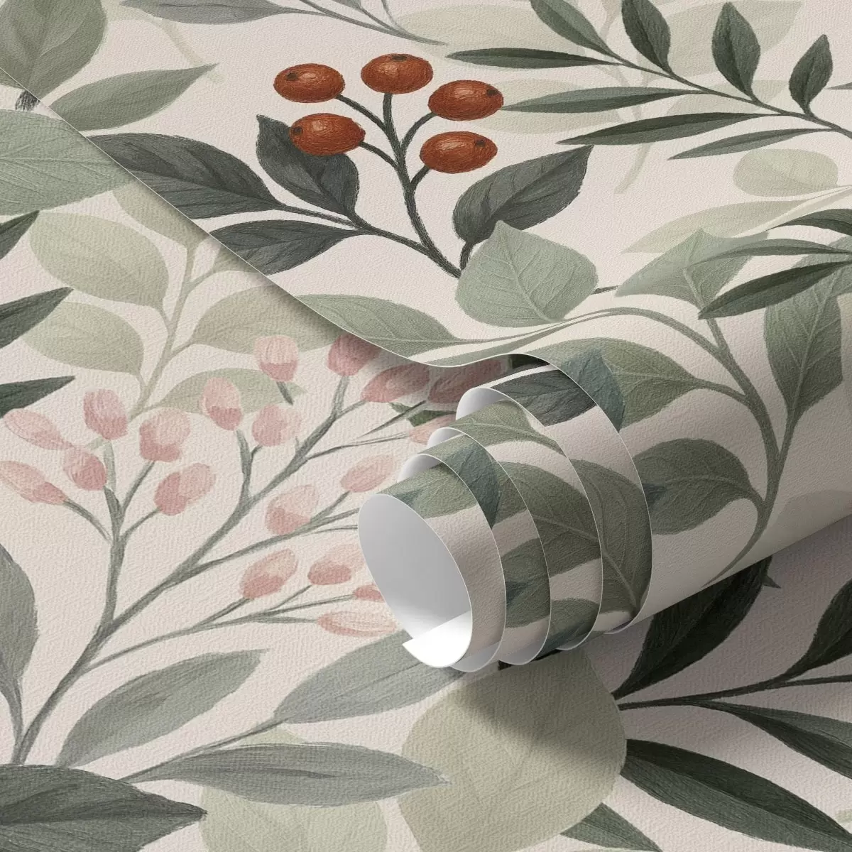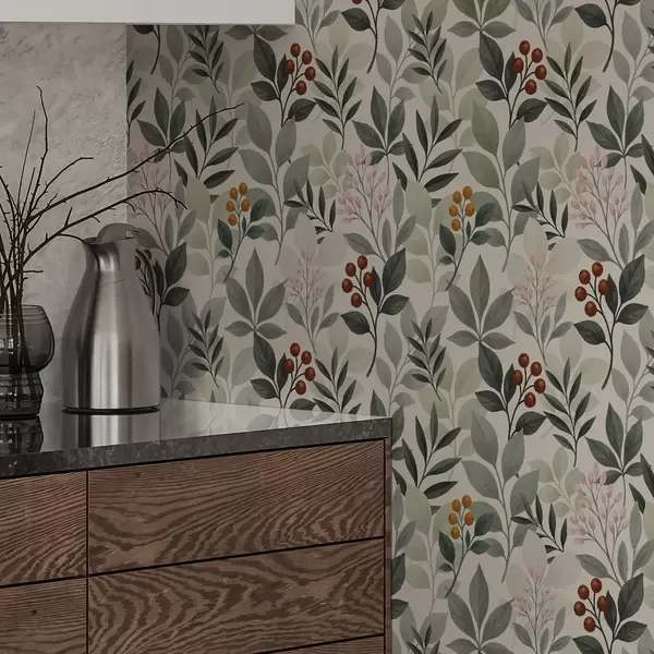 Carta da parati Foglie con bacche, sfondo chiaro Nr. a00713