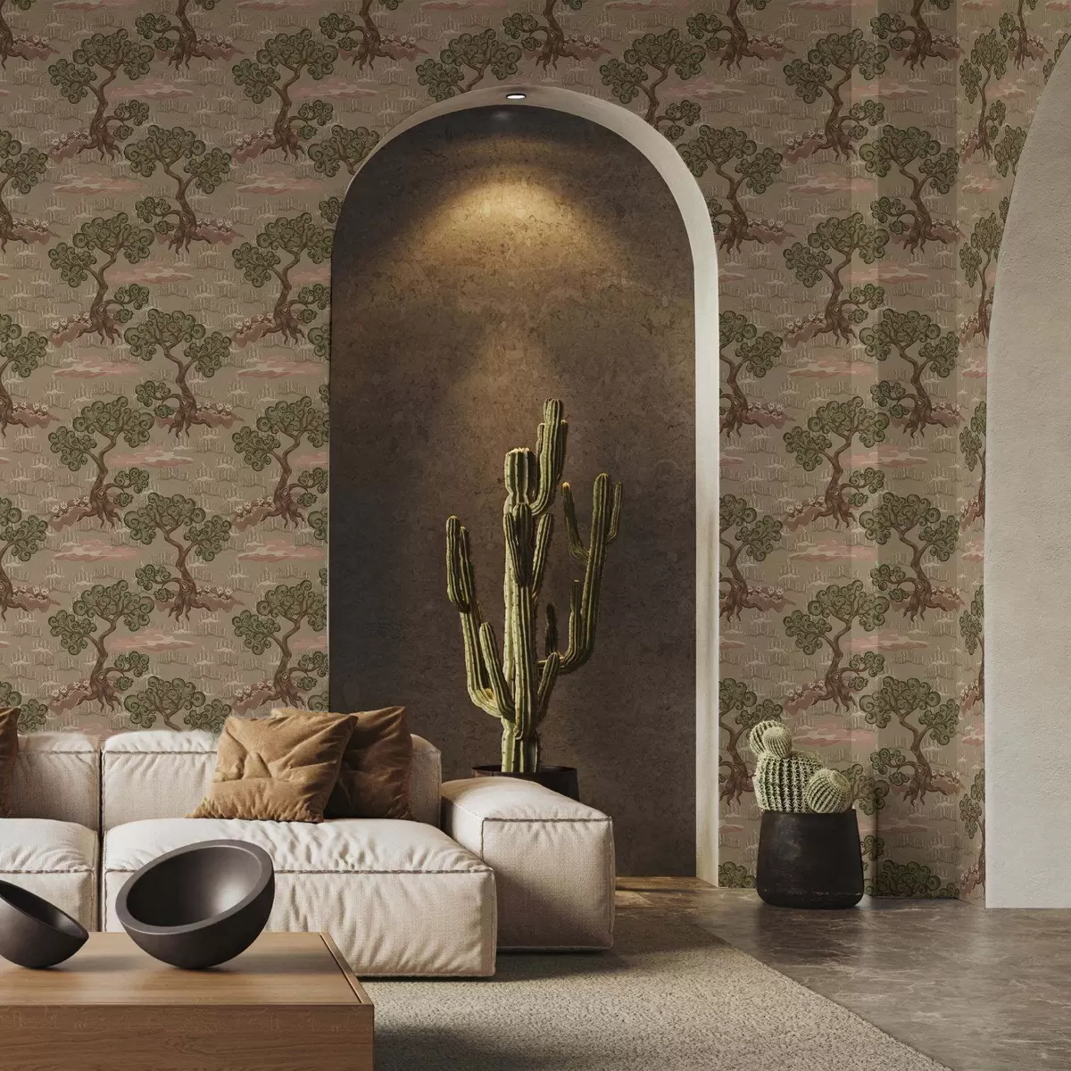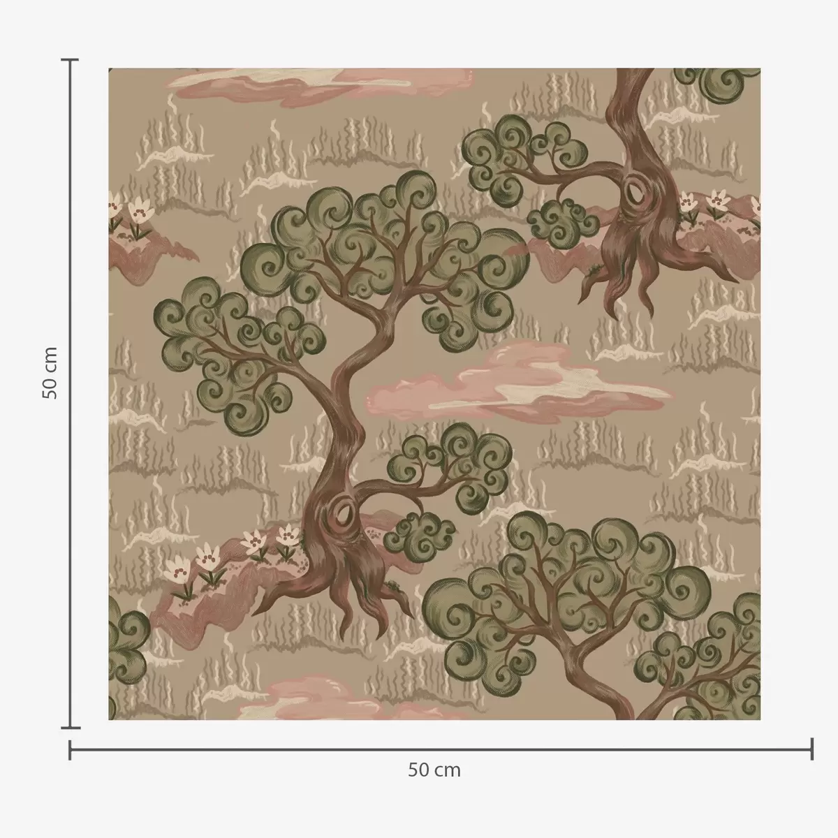 Carta da parati Paesaggio orientale con alberi stravaganti su uno sfondo sabbioso Nr. a00715