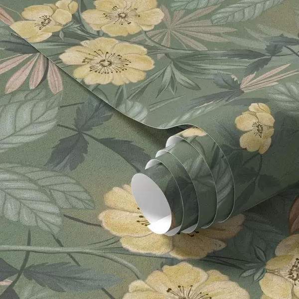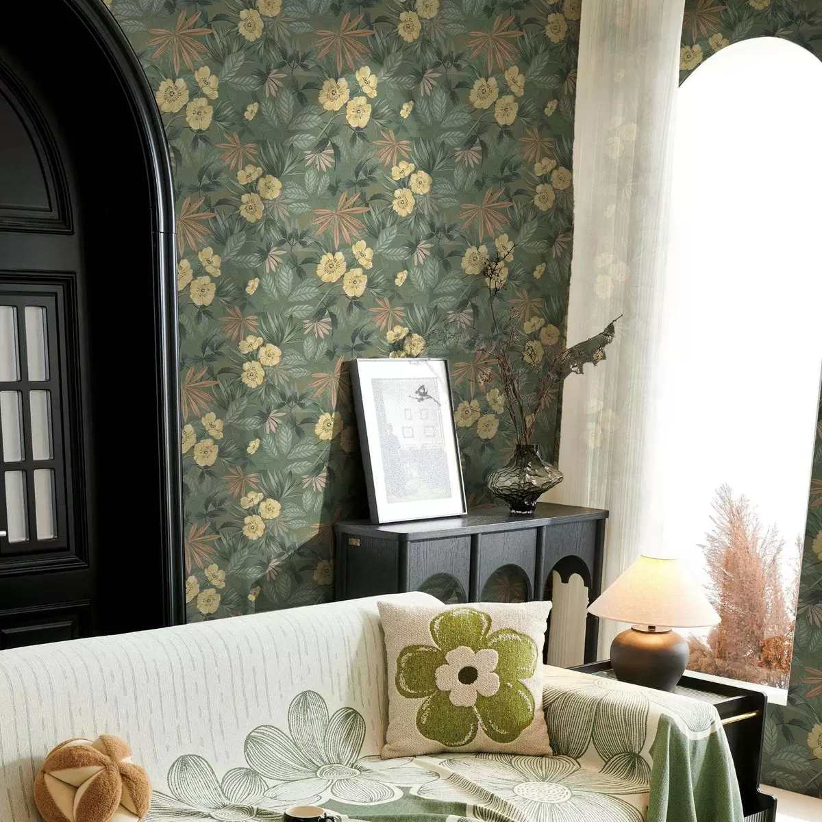 Carta da parati Fiori gialli tra foglie verdi Nr. a00718