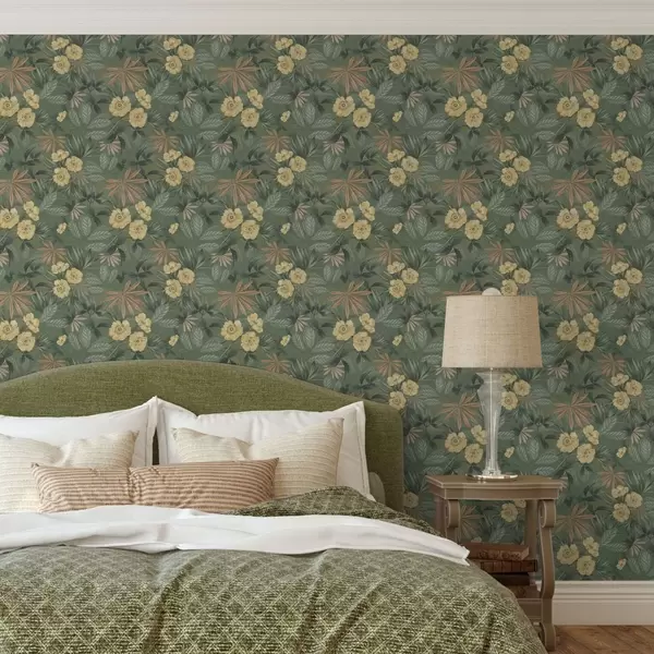 Carta da parati Fiori gialli tra foglie verdi Nr. a00718