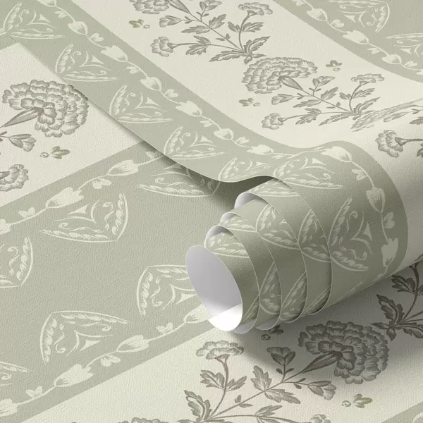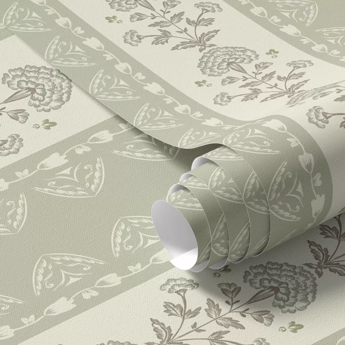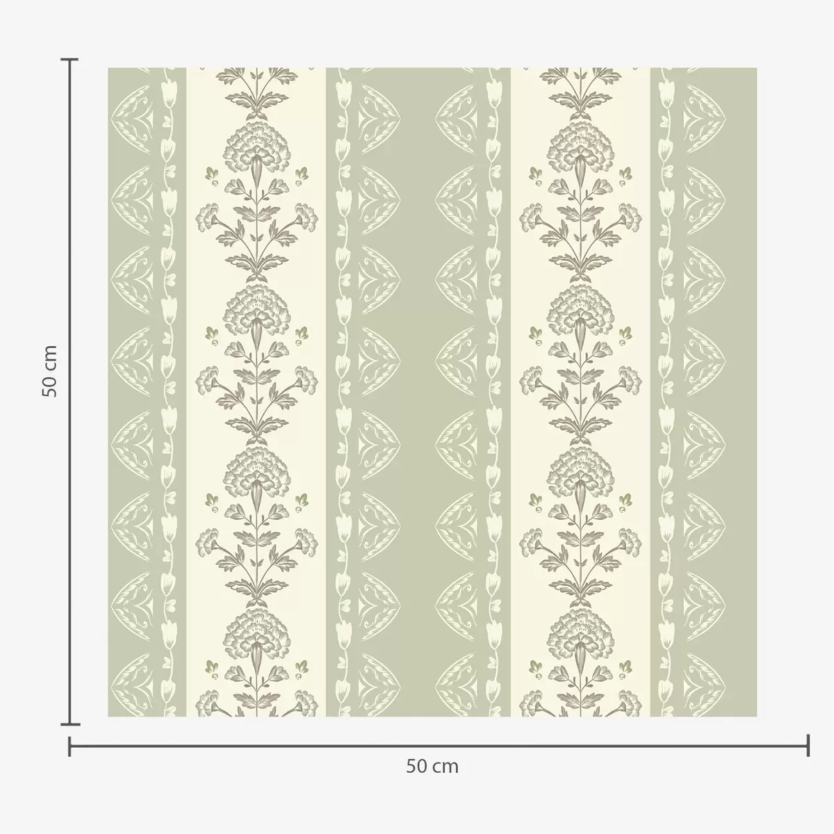 Carta da parati Ornamento a strisce con colonne floreali nei toni del salvia Nr. a00719