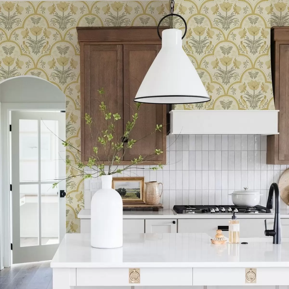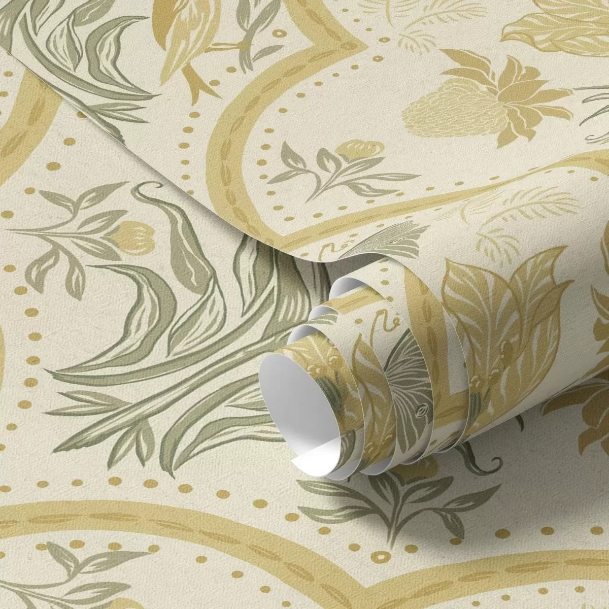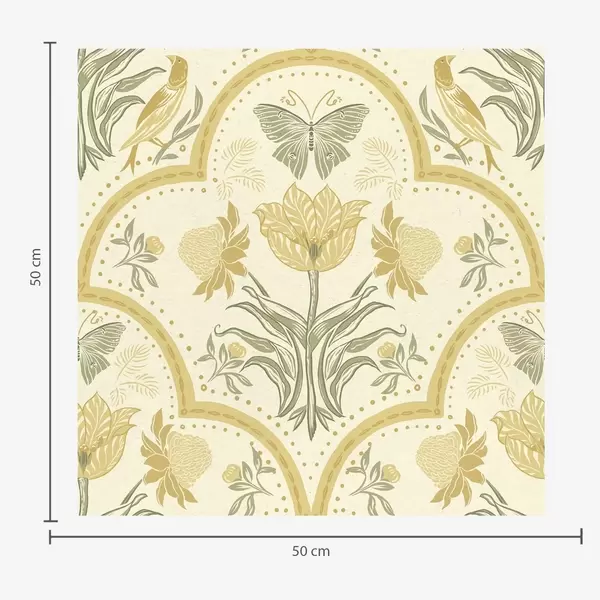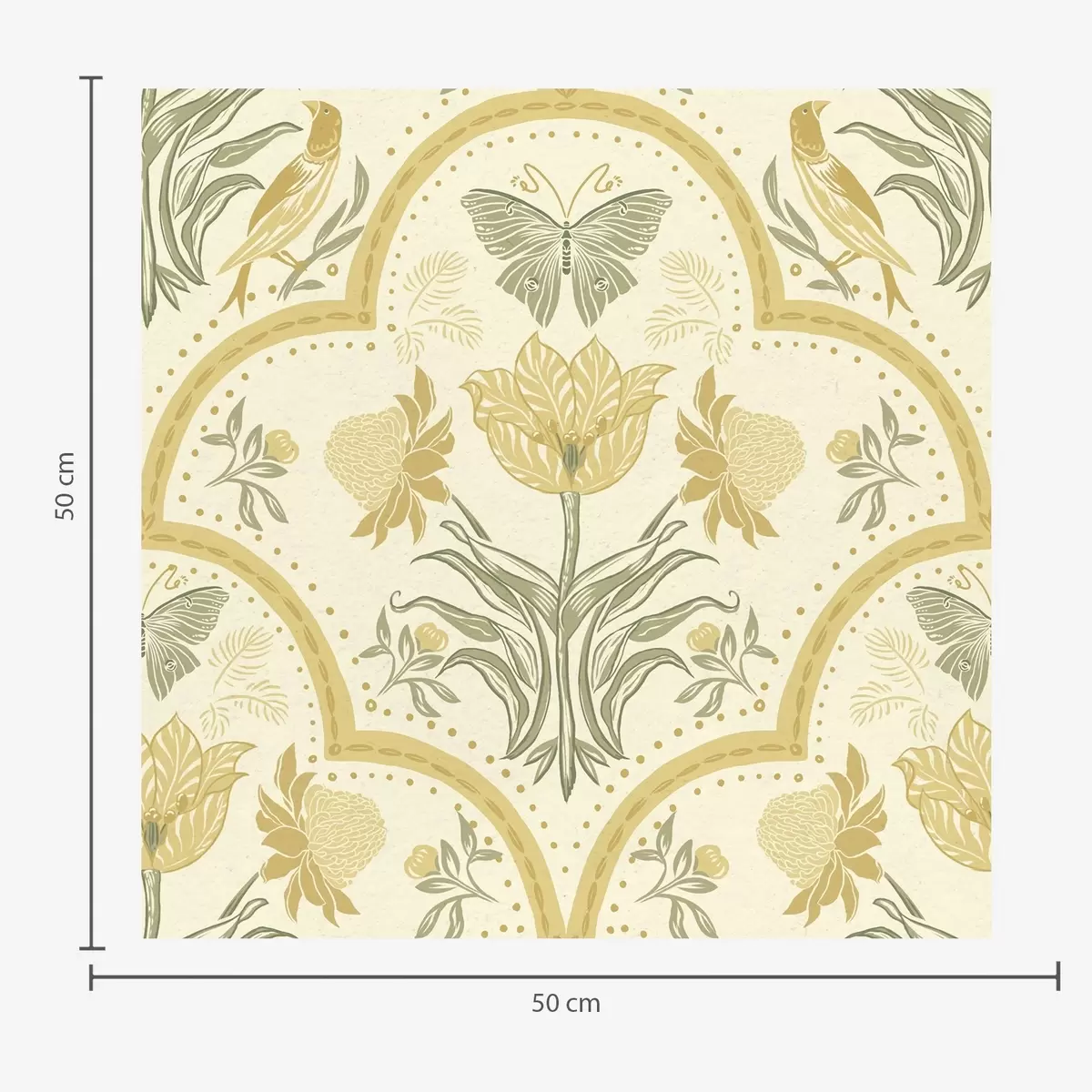 Carta da parati Ornamento con tulipano, uccelli e farfalle, ocra Nr. a00722