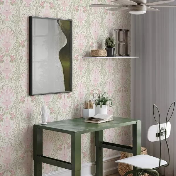 Carta da parati Fontane, colibrì e volute verdi su sfondo chiaro Nr. a00723