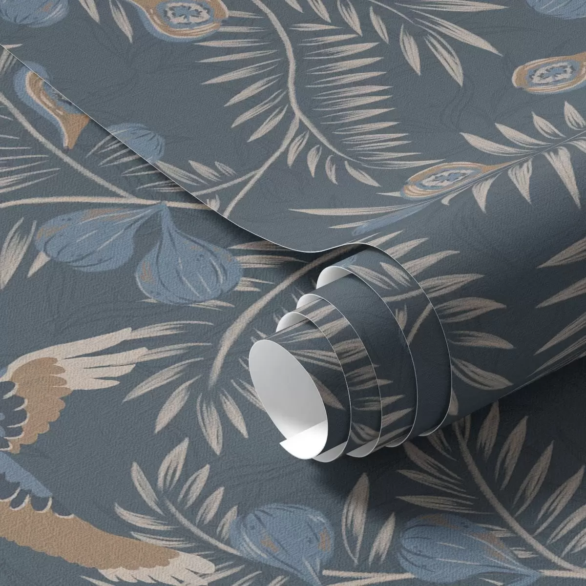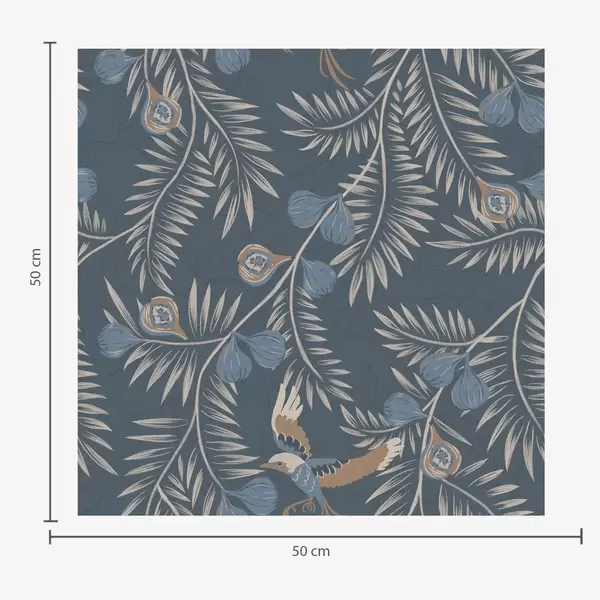 Carta da parati Uccello tra frutti blu e foglie di palma, indaco Nr. a00726