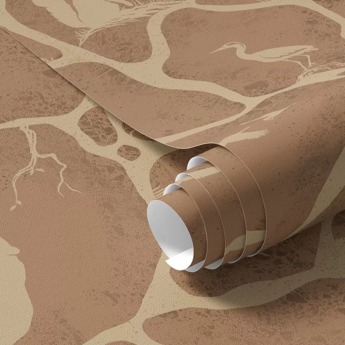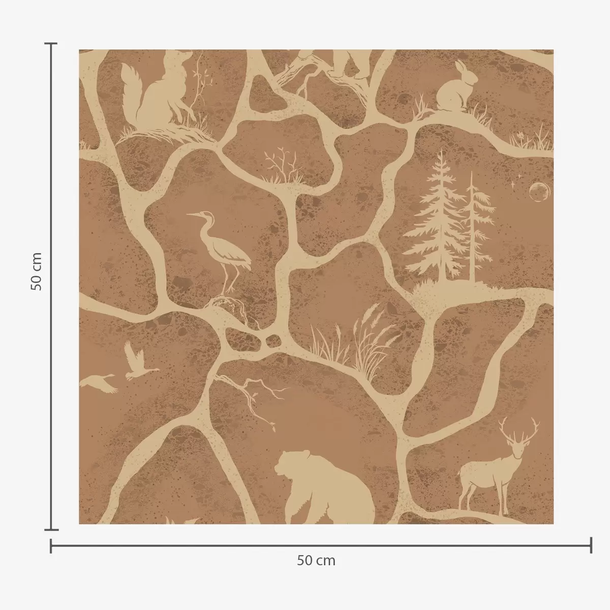 Carta da parati Sagome di animali e alberi in un paesaggio naturale con texture in pietra Nr. a00727