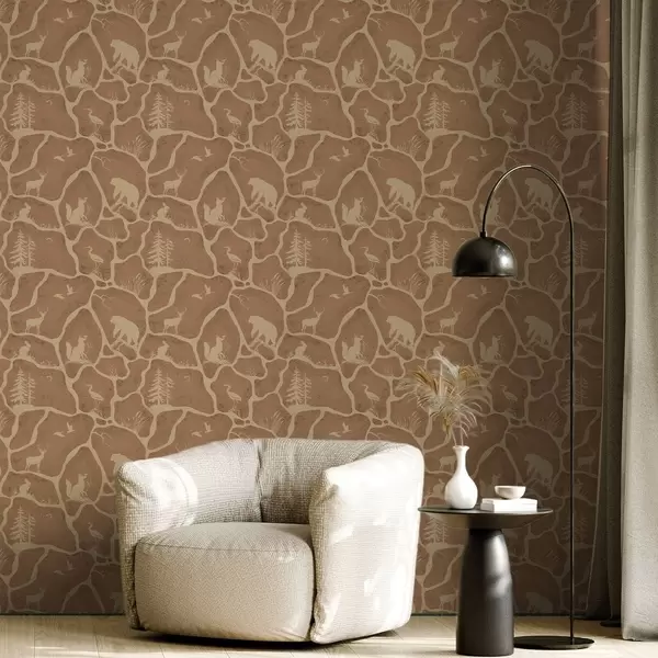 Carta da parati Sagome di animali e alberi in un paesaggio naturale con texture in pietra Nr. a00727