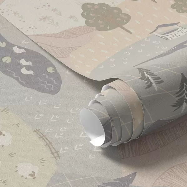 Carta da parati Campagna fiabesca con alberi, oche e pecore Nr. a00728