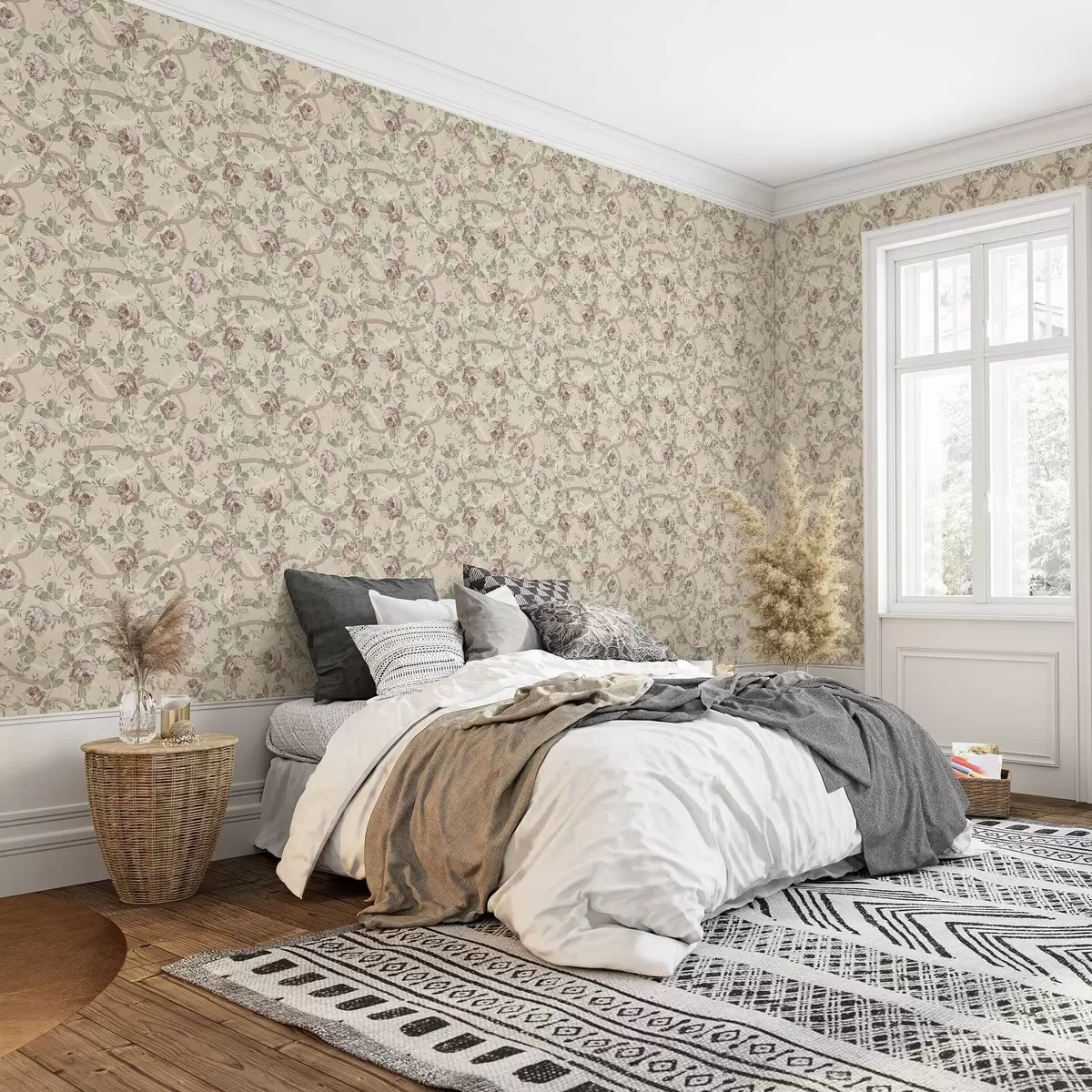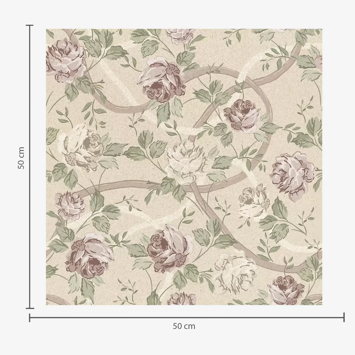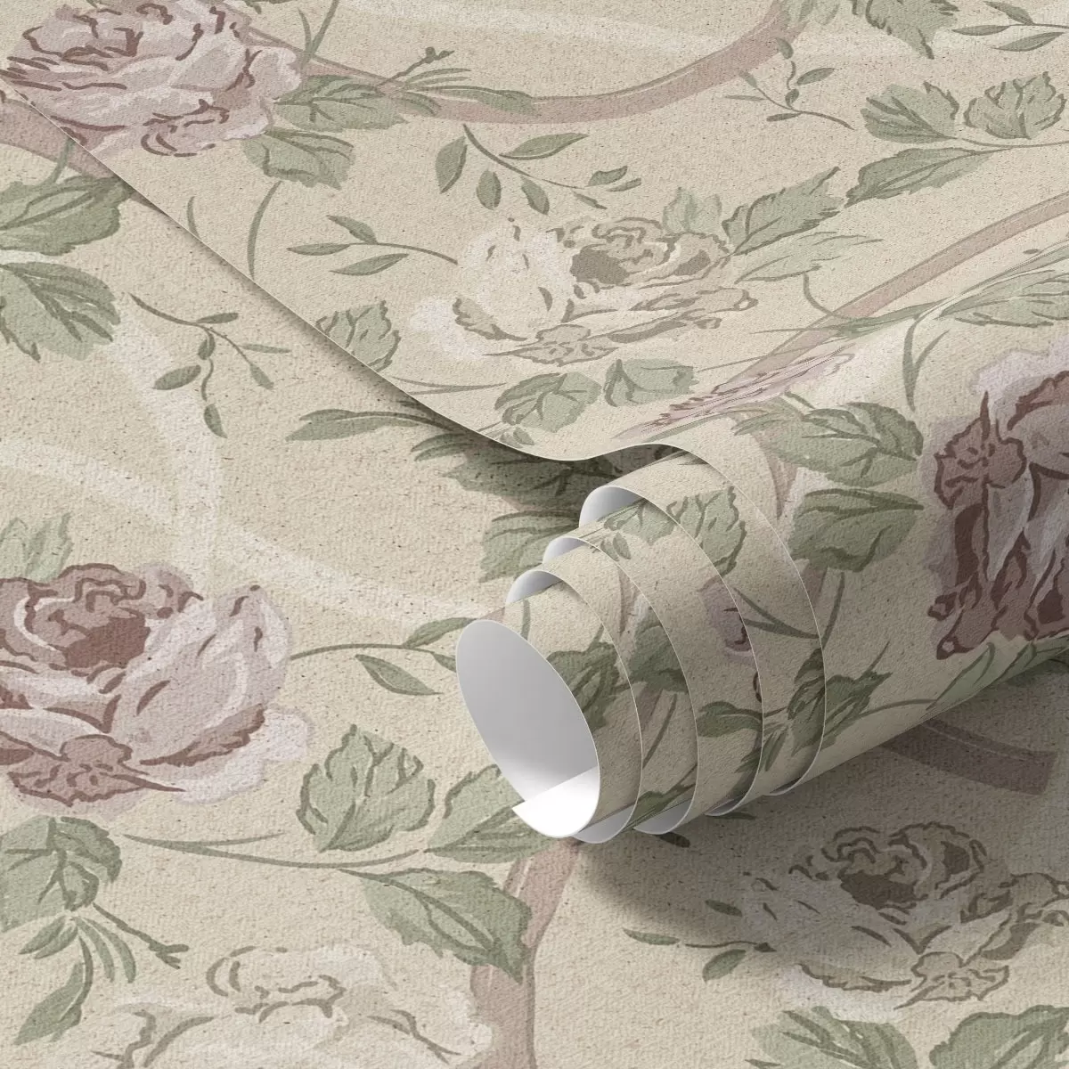 Carta da parati Rose con foglie verdi su una calda base beige Nr. a00729