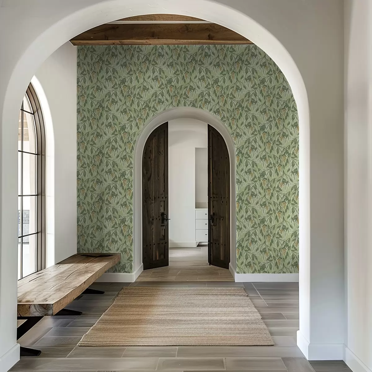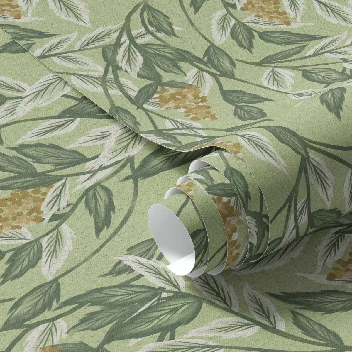Carta da parati Rami con grappoli di bacche su sfondo verde Nr. a00734
