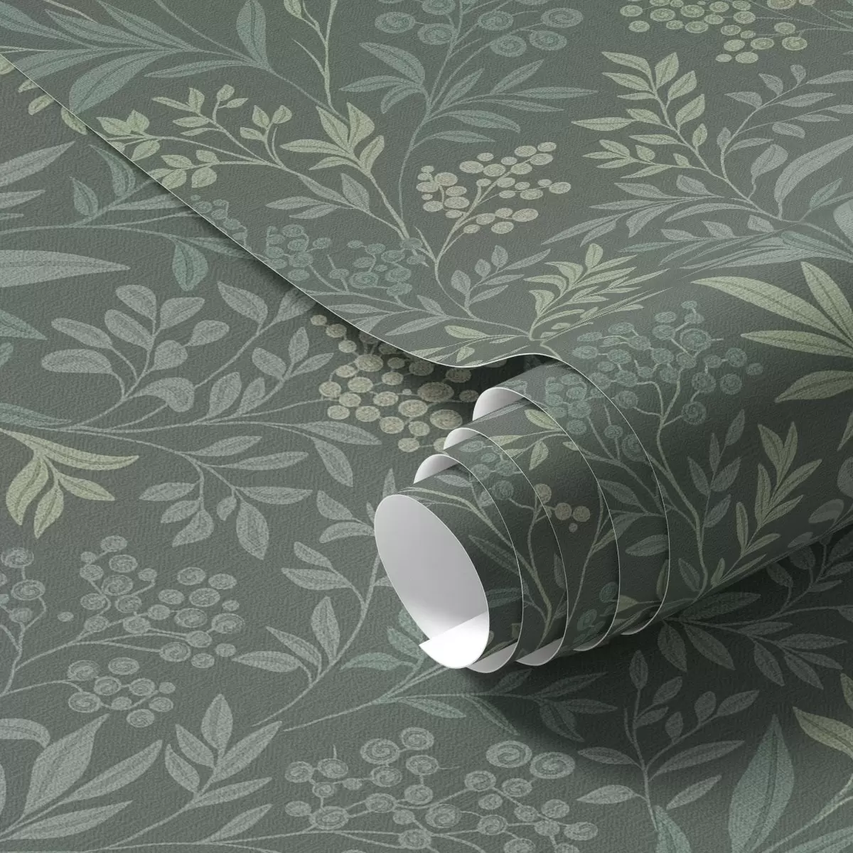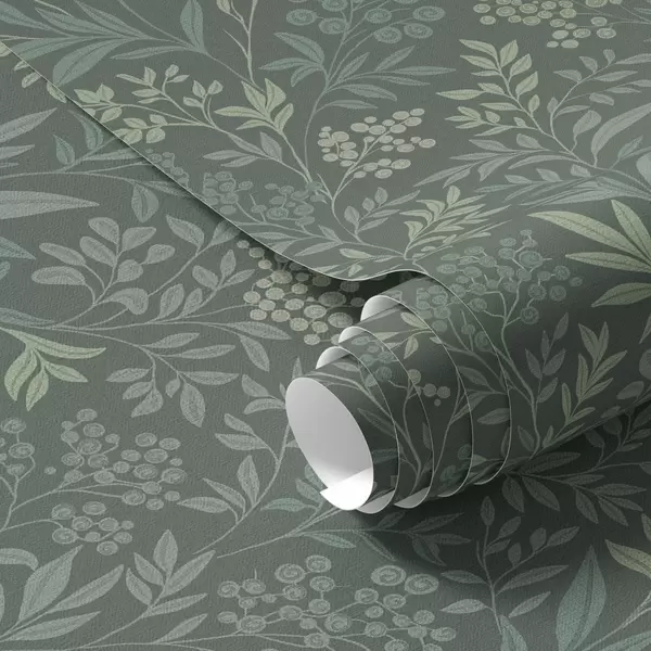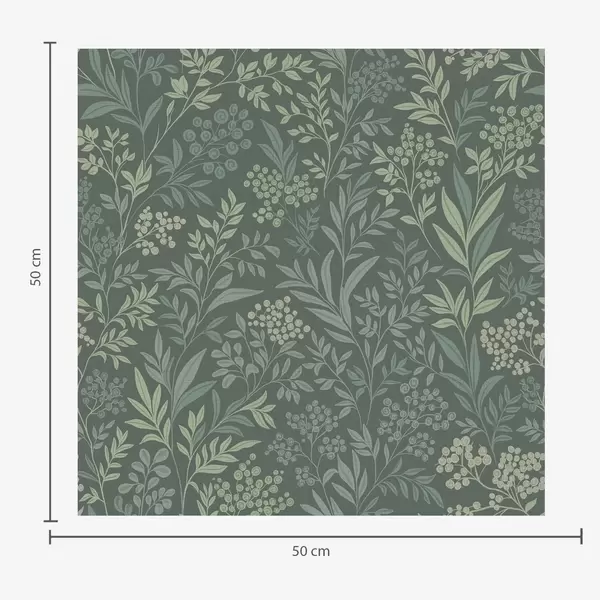 Carta da parati Erbe e bacche color smeraldo, raffinato motivo botanico Nr. a00740