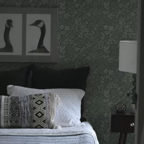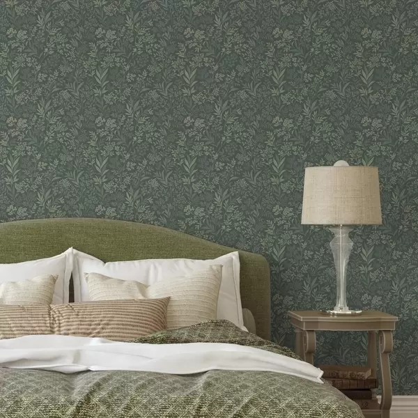 Carta da parati Erbe e bacche color smeraldo, raffinato motivo botanico Nr. a00740