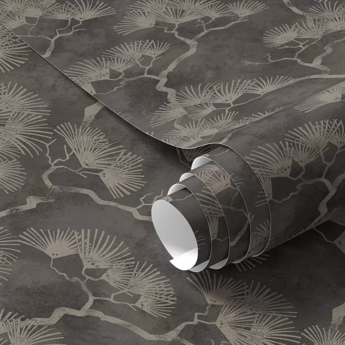 Carta da parati Sagome di pini su sfondo scuro, texture nebbiosa Nr. a00742