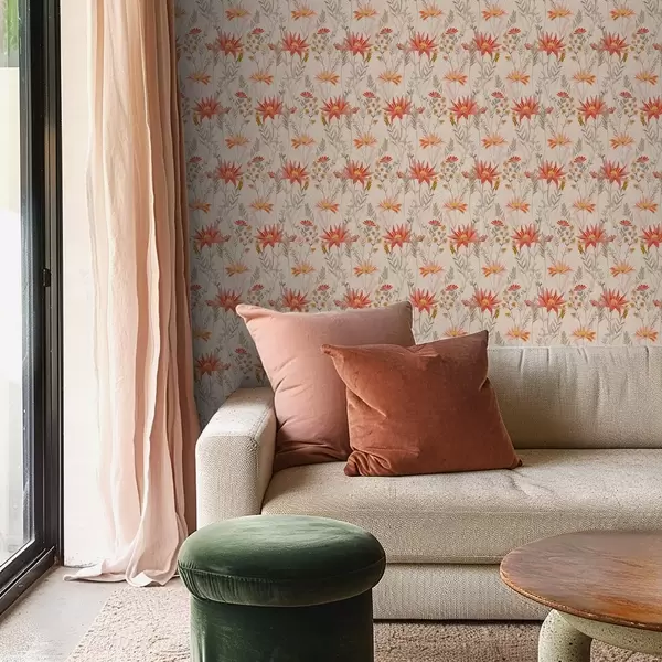 Carta da parati Fiori selvatici dai toni caldi su sfondo beige Nr. a00751