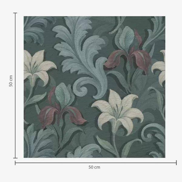 Carta da parati Sfondo verde scuro con iris e foglie decorative Nr. a00755