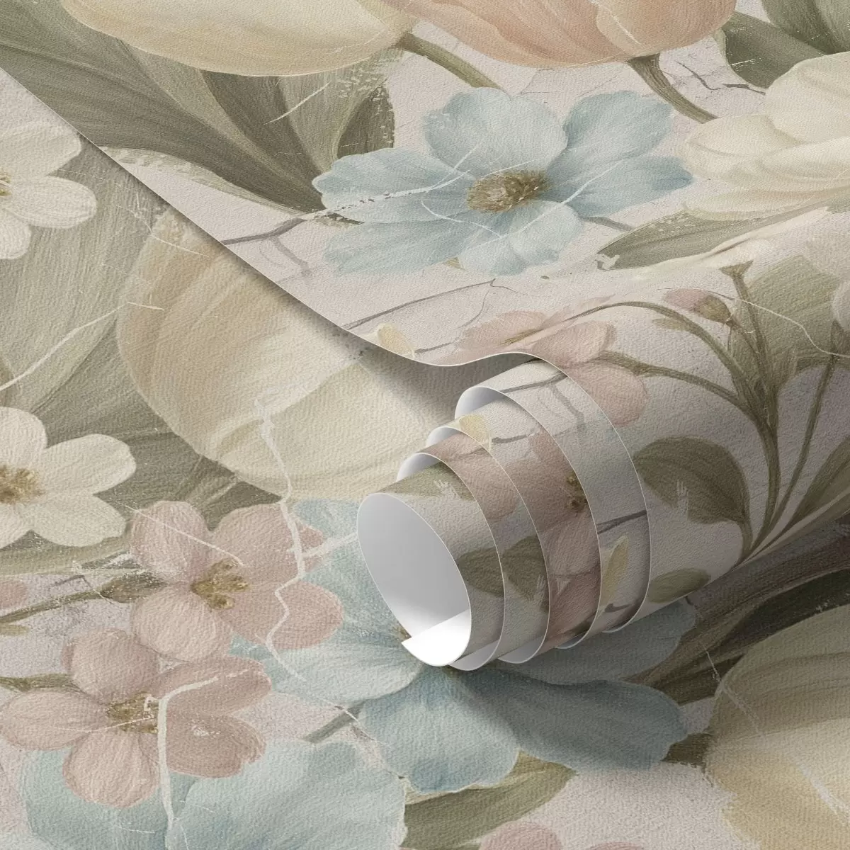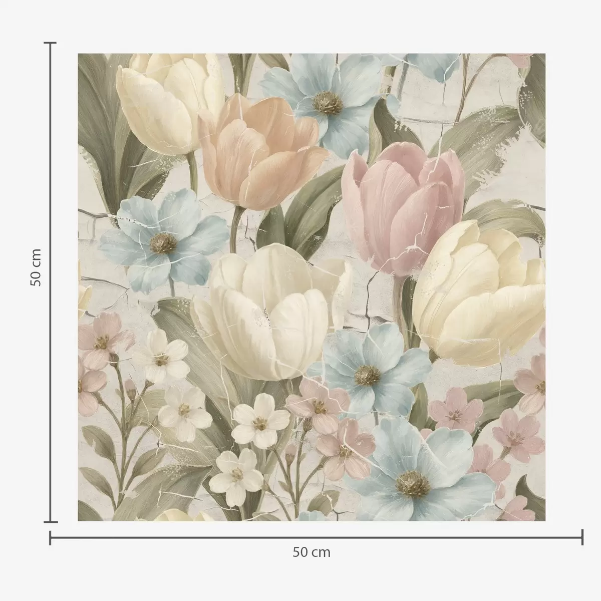 Carta da parati Tulipani e fiori pastello su sfondo chiaro screpolato Nr. a00756