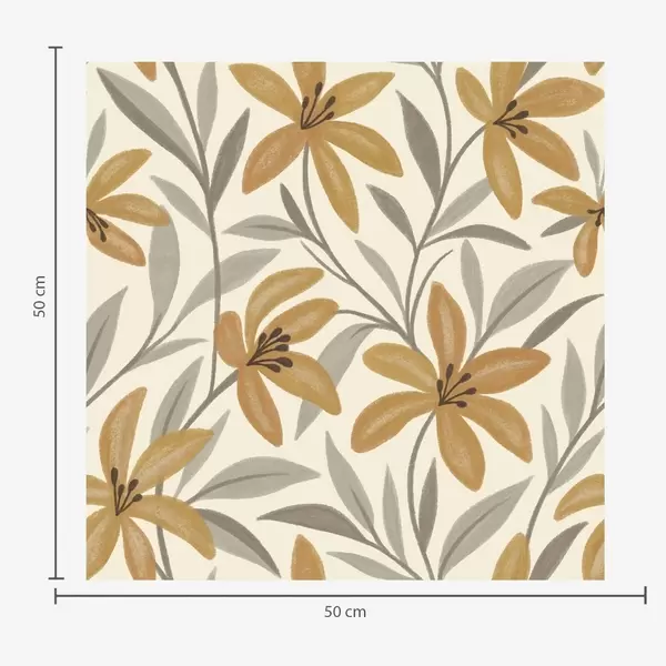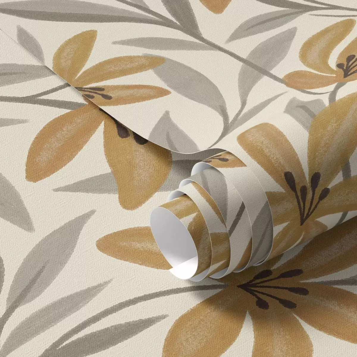 Carta da parati Gigli gialli e foglie grigio-verdi su sfondo chiaro Nr. a00757