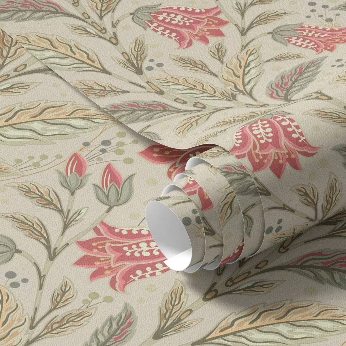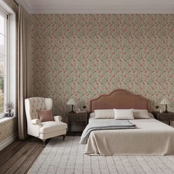 Carta da parati Piccoli fiori con campanelle in tonalità rosa-verde Nr. a00760