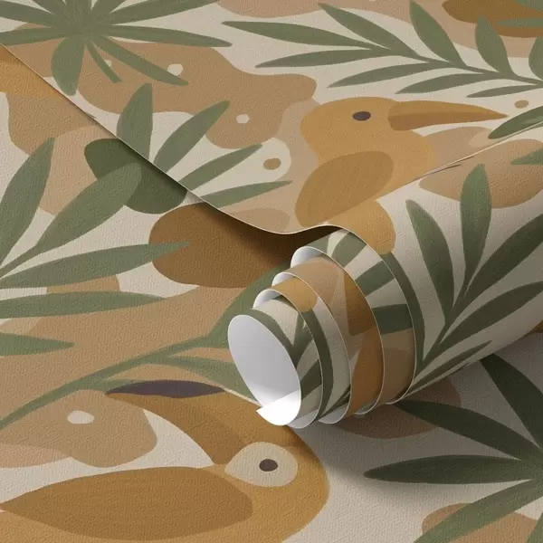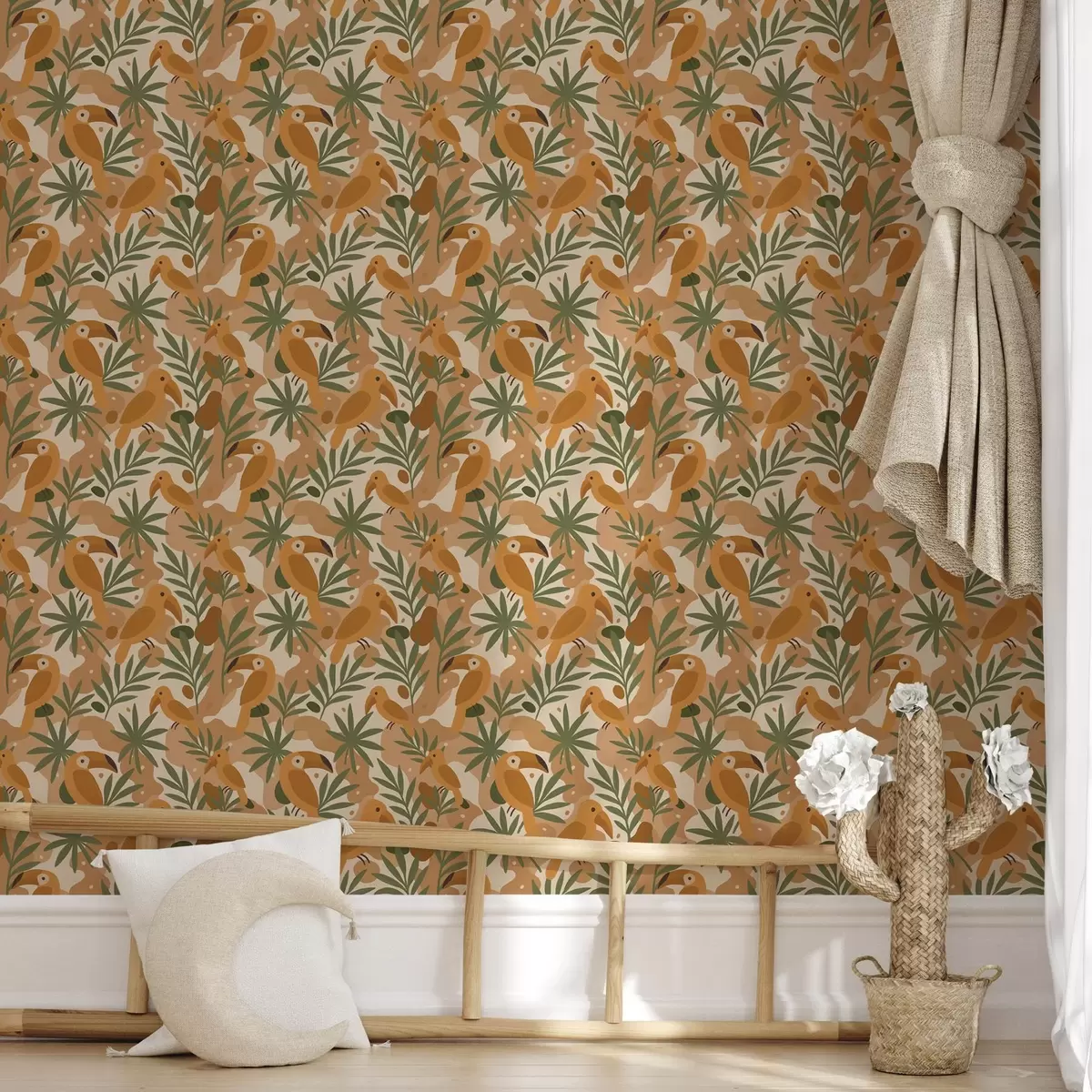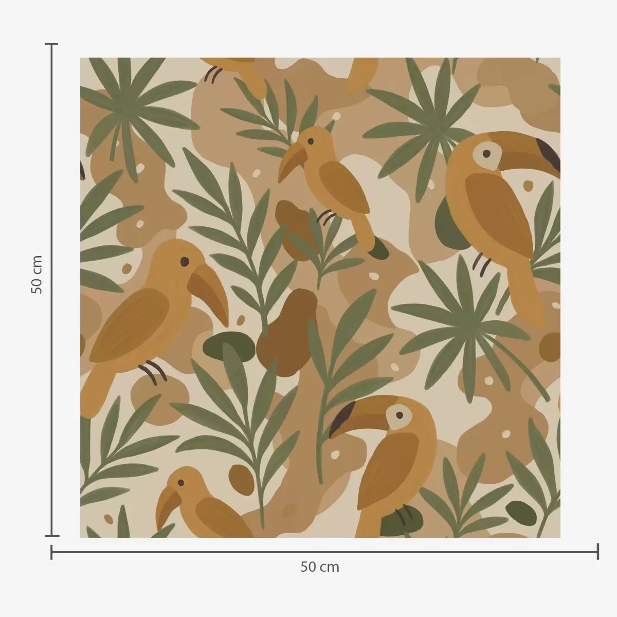 Carta da parati Tucani stilizzati tra le foglie di palma Nr. a00762