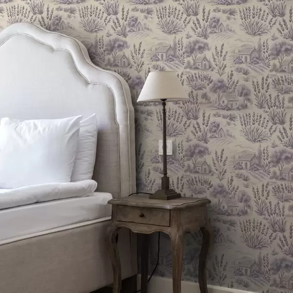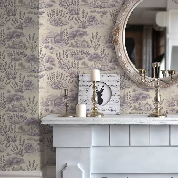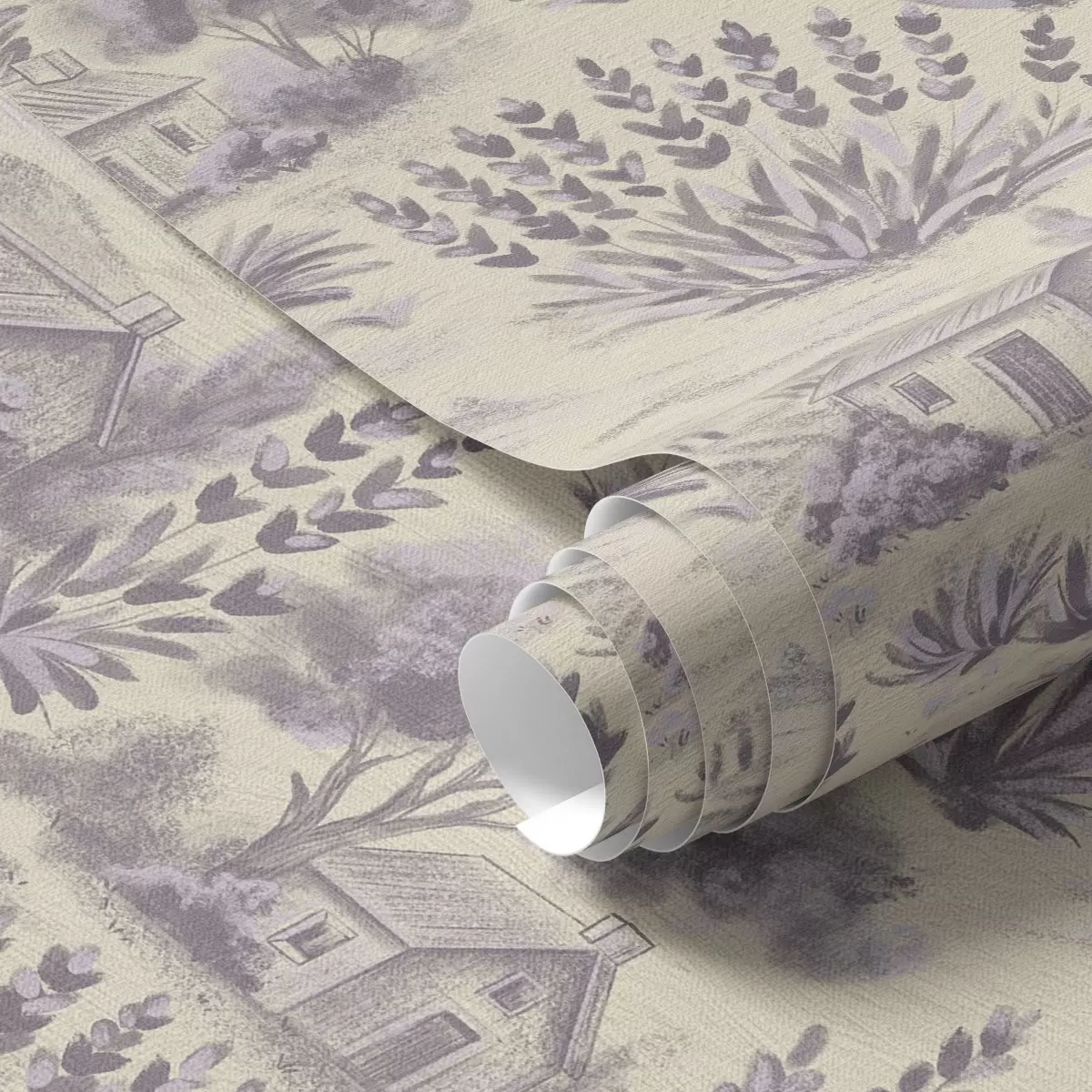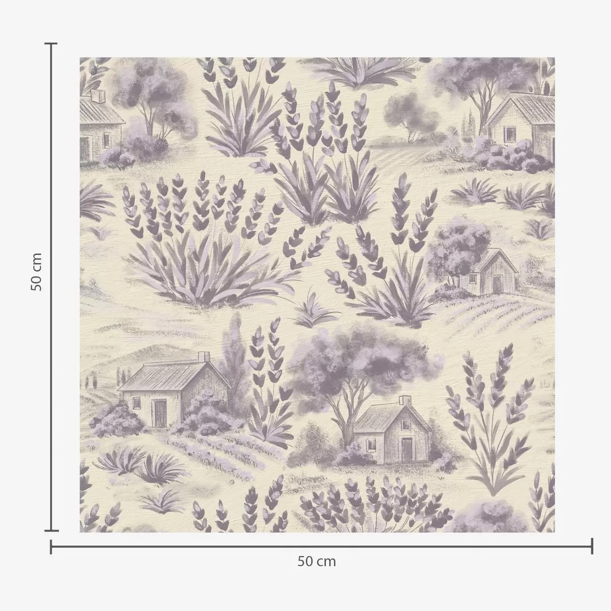 Carta da parati Campi di lavanda e case dai toni pastello Nr. a00765