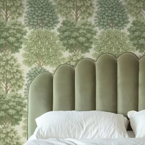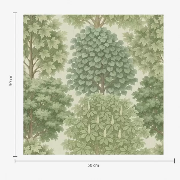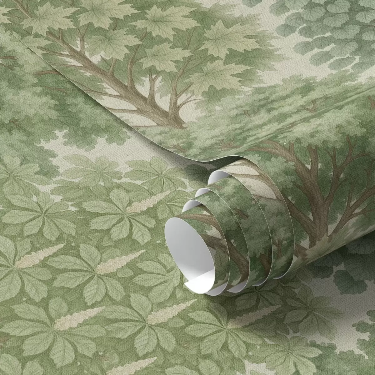 Carta da parati Giardino alberato nei toni tenui del verde su sfondo chiaro Nr. a00775