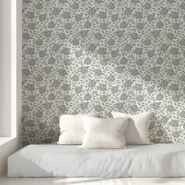 Carta da parati Fiori e foglie cespugliosi in una palette di colori grigio-blu Nr. a00778