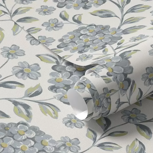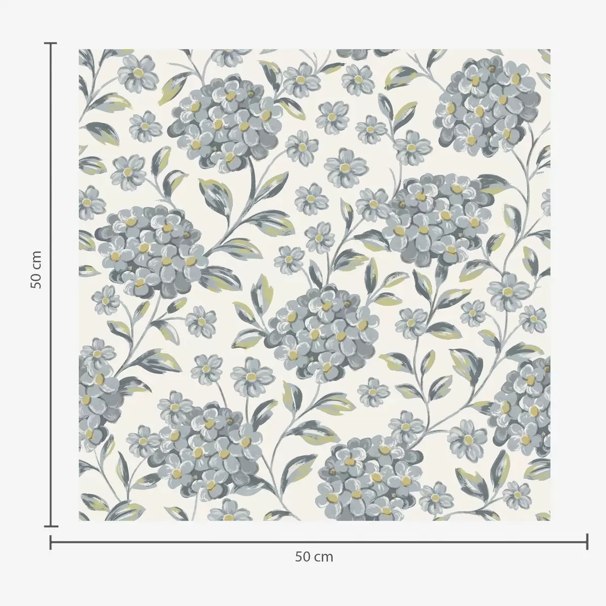 Carta da parati Fiori e foglie cespugliosi in una palette di colori grigio-blu Nr. a00778