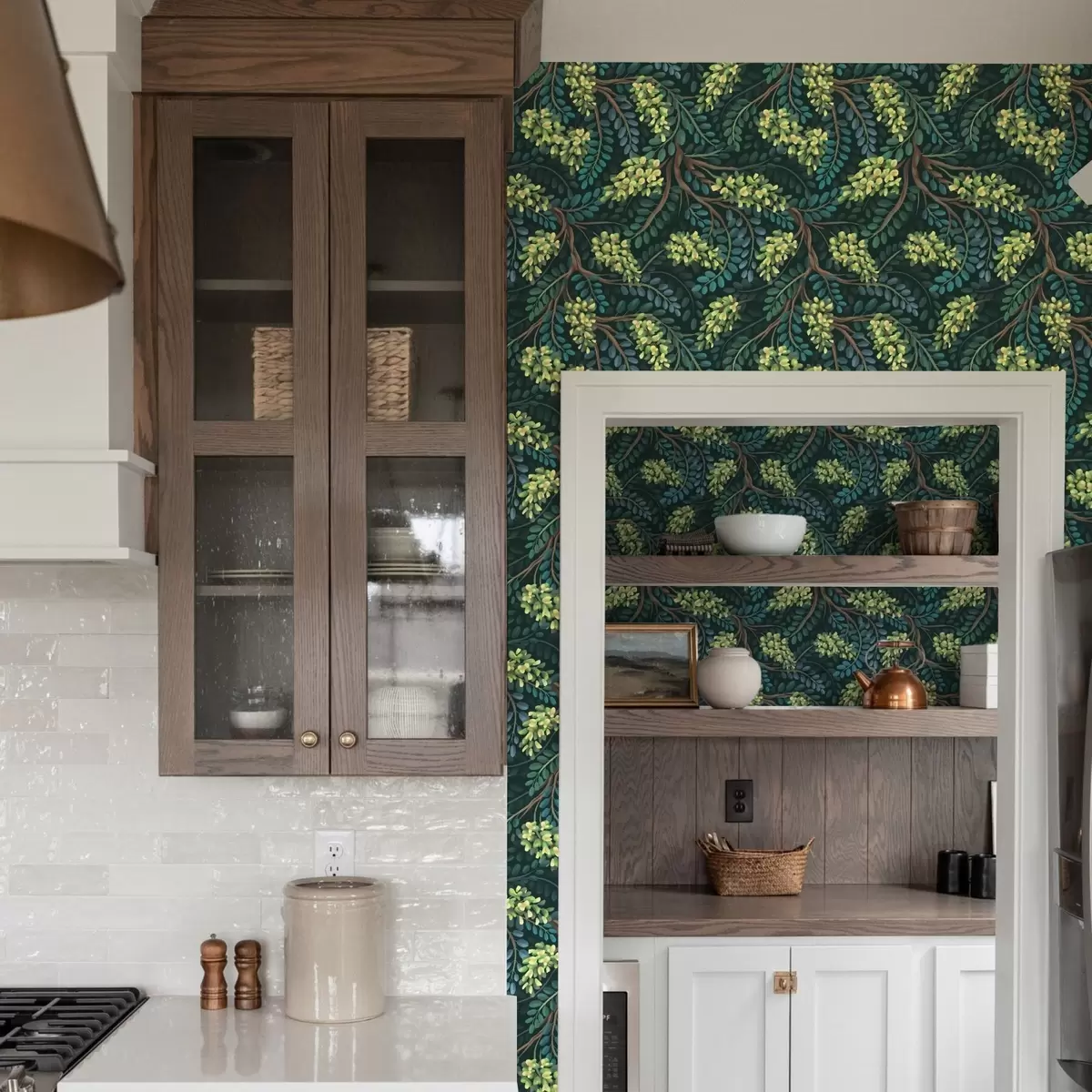 Carta da parati Rami con infiorescenze verdastre su sfondo scuro Nr. a00786