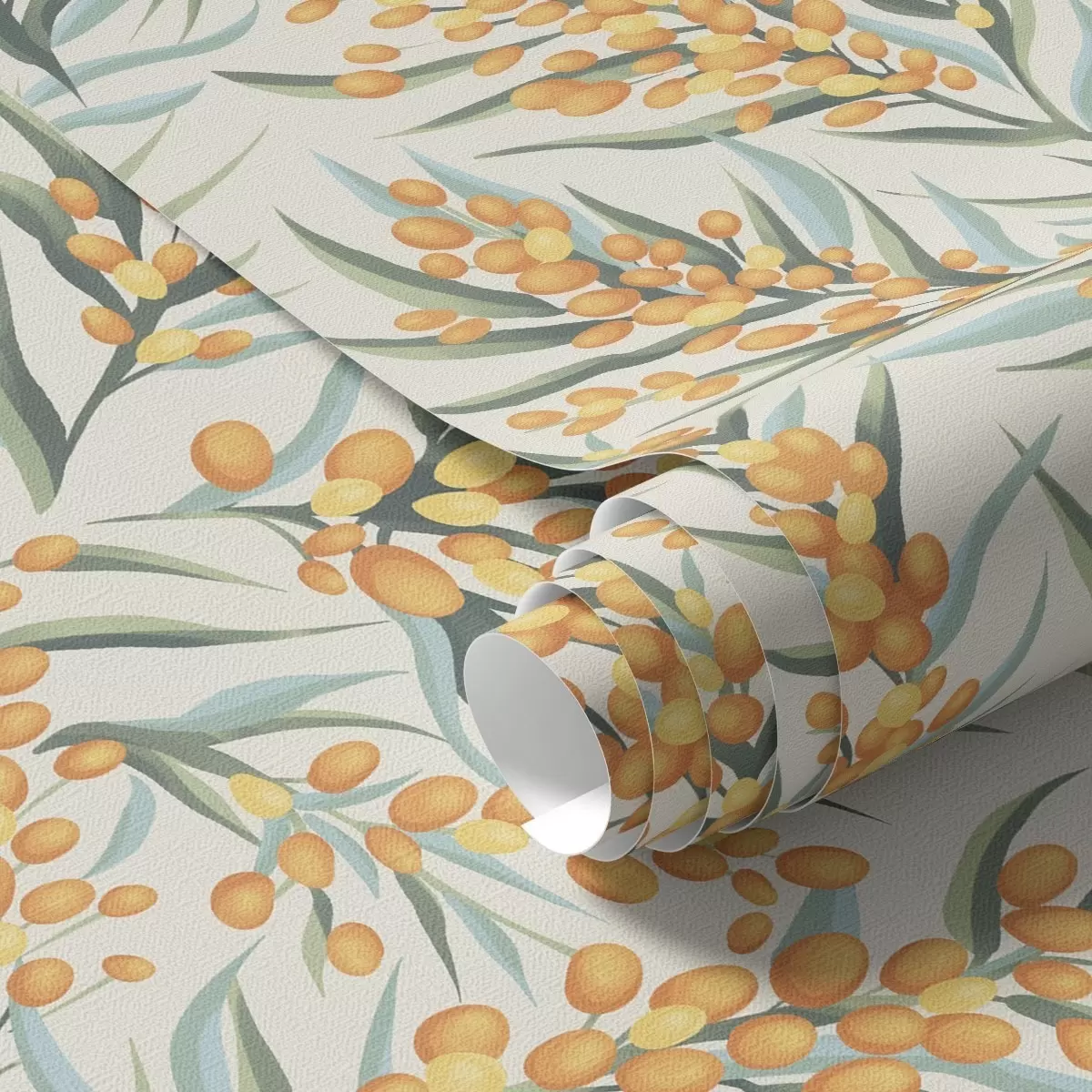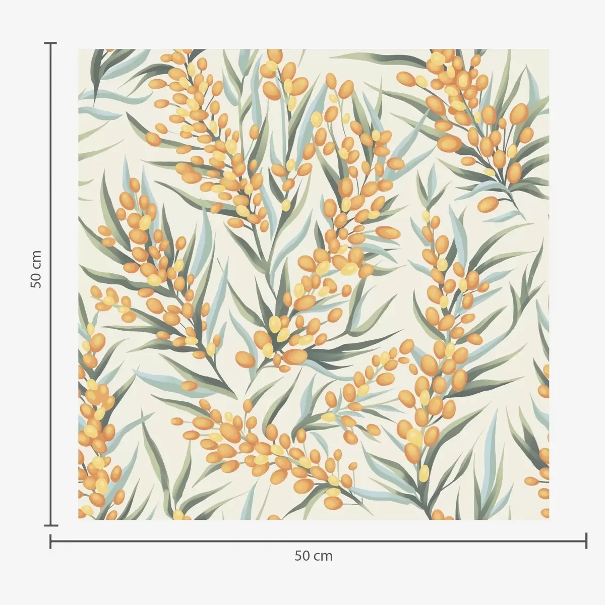 Carta da parati Rami di olivello spinoso con bacche arancioni, sfondo chiaro Nr. a00792