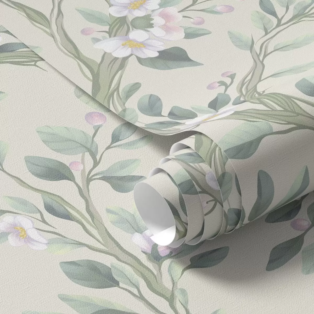 Carta da parati Delicati rami in fiore su sfondo color crema, colori pastello Nr. a00793
