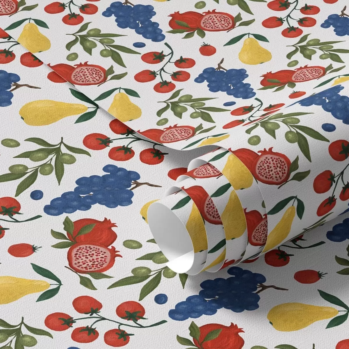 Carta da parati Frutta succosa: melograni, uva, pere su sfondo bianco Nr. a00801