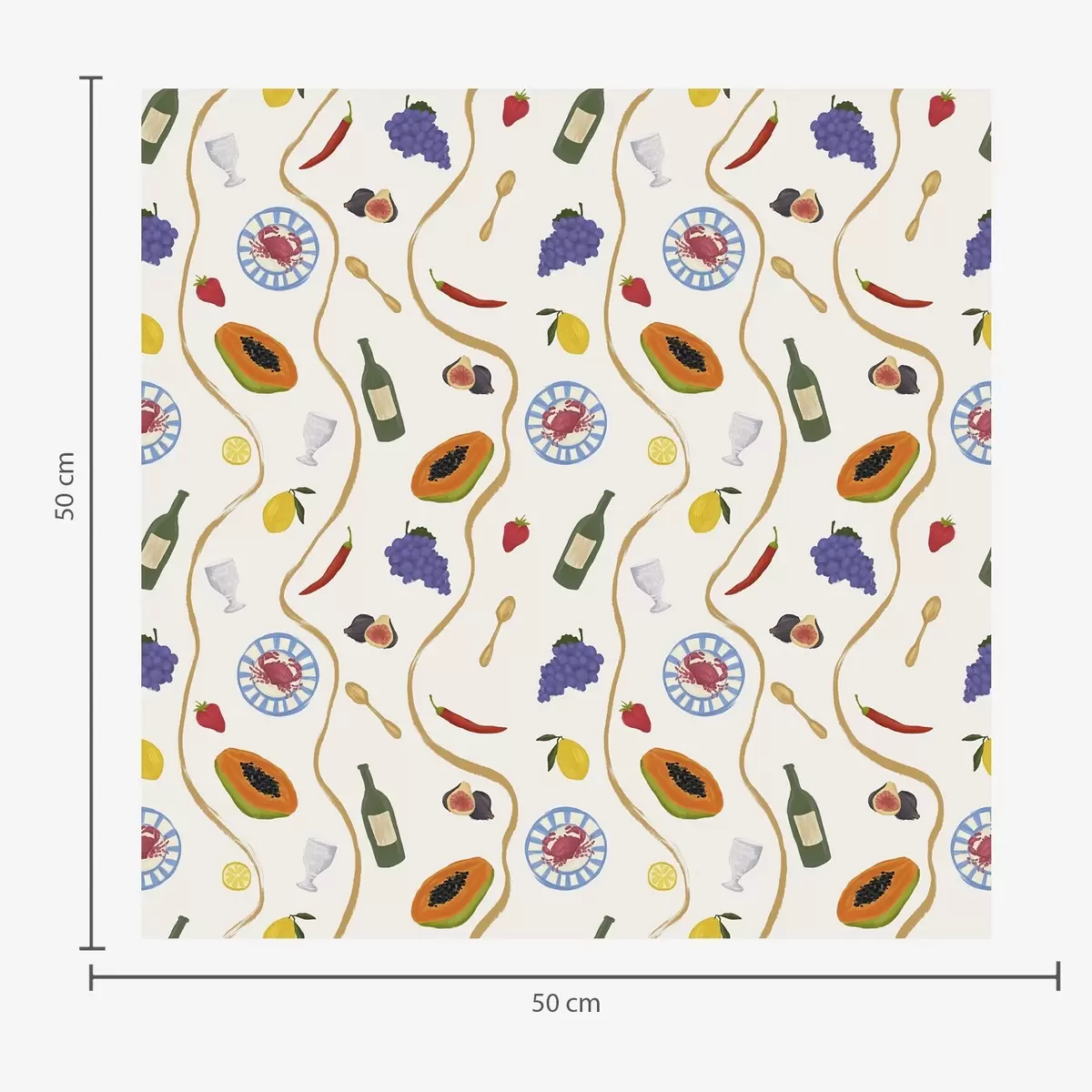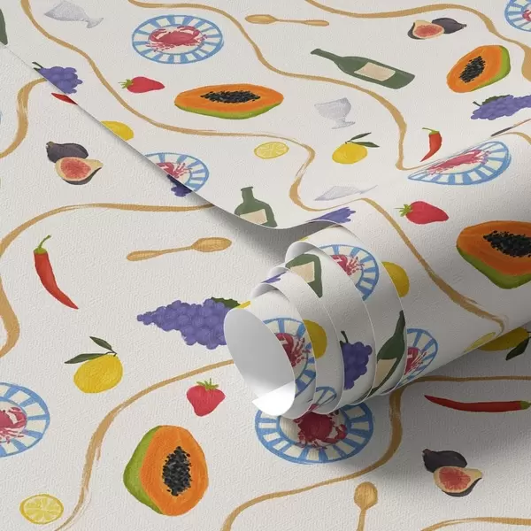 Carta da parati Bottiglie, papaya, limoni e spezie su sfondo chiaro Nr. a00802