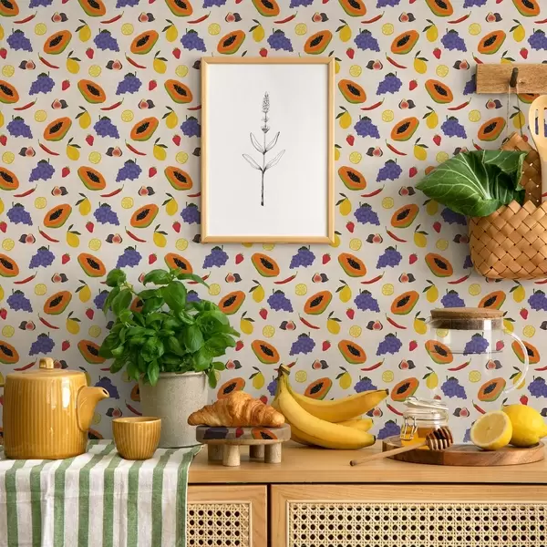 Carta da parati Papaya, uva e limoni: un mix di frutta dai colori vivaci Nr. a00803