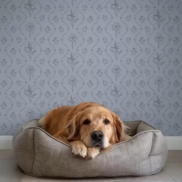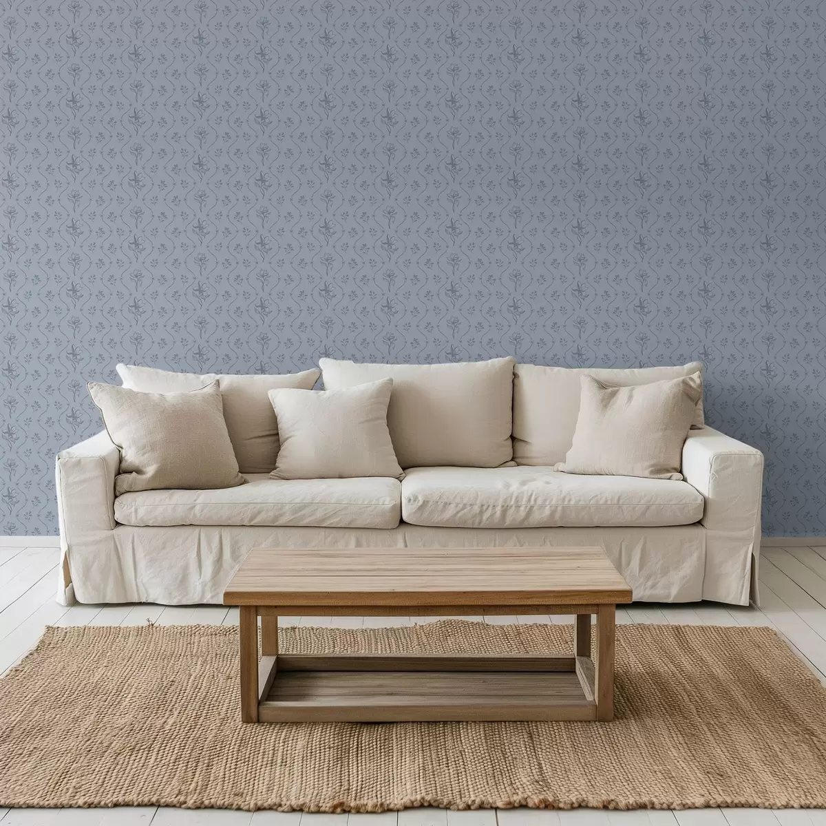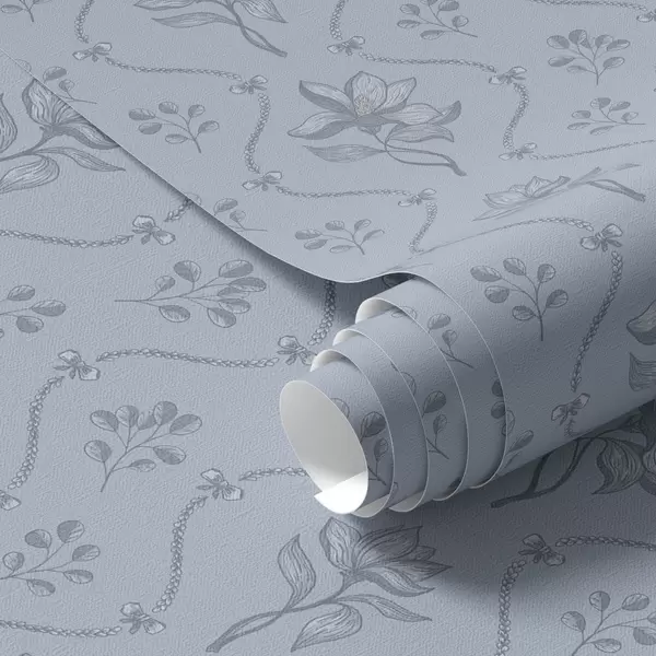 Carta da parati Piccoli fiori e nastri in una palette di colori grigio-blu Nr. a00808v2
