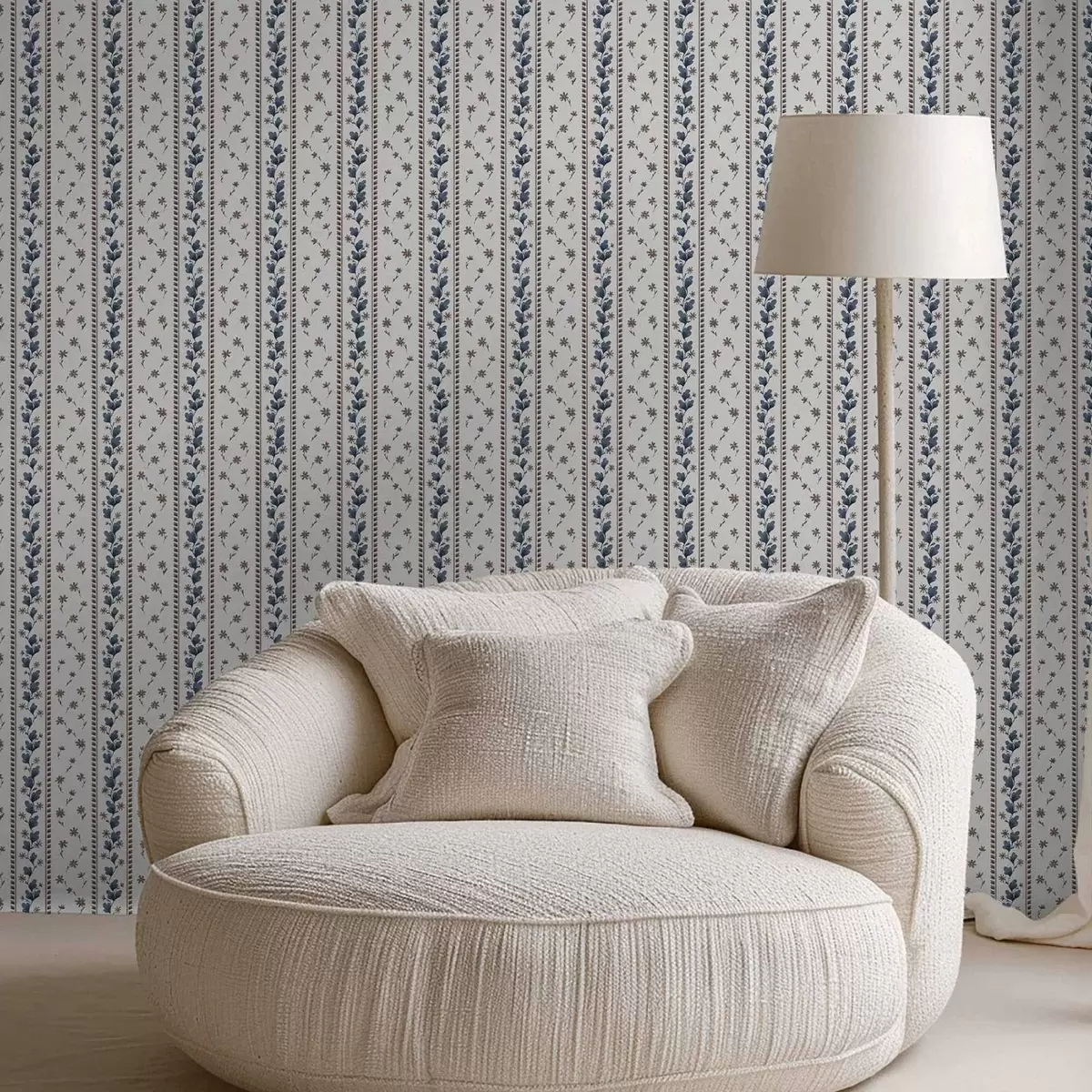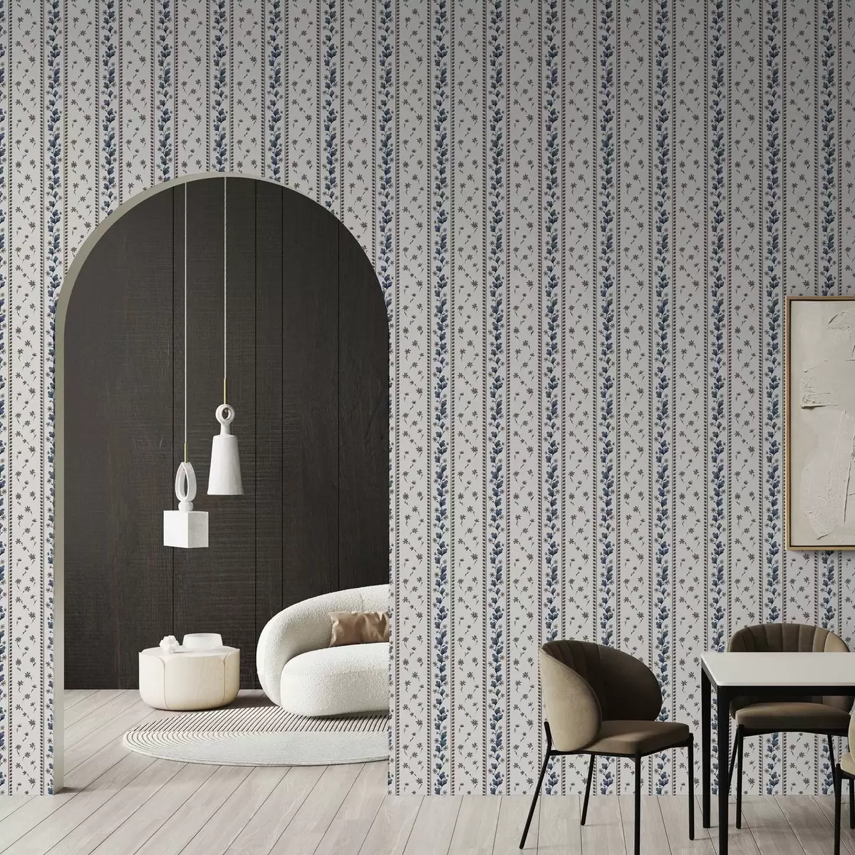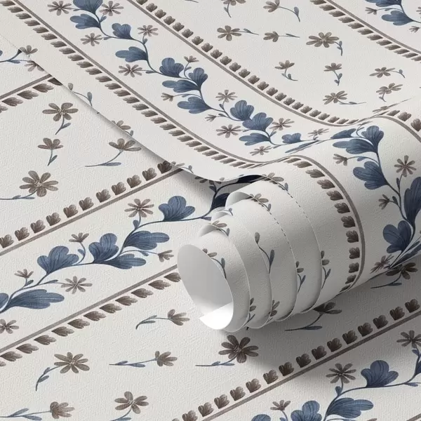 Carta da parati Strisce floreali verticali nei toni del blu-marrone Nr. a00811v2