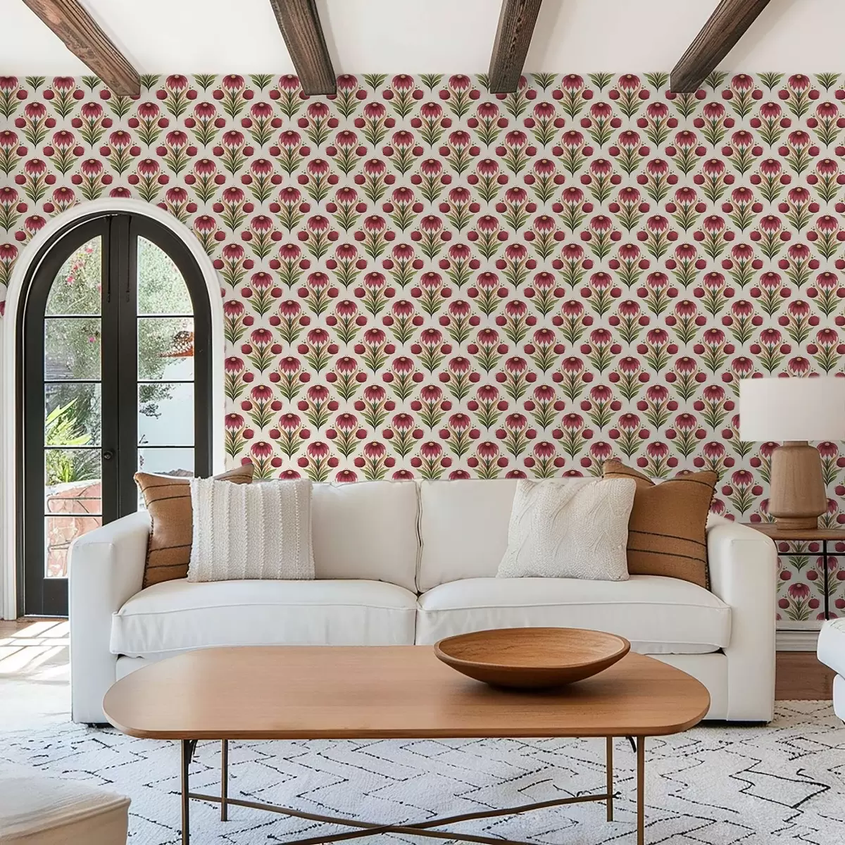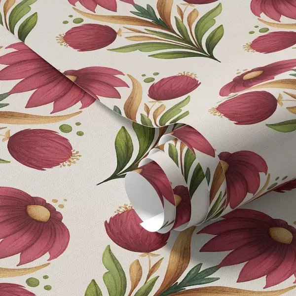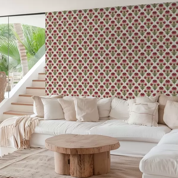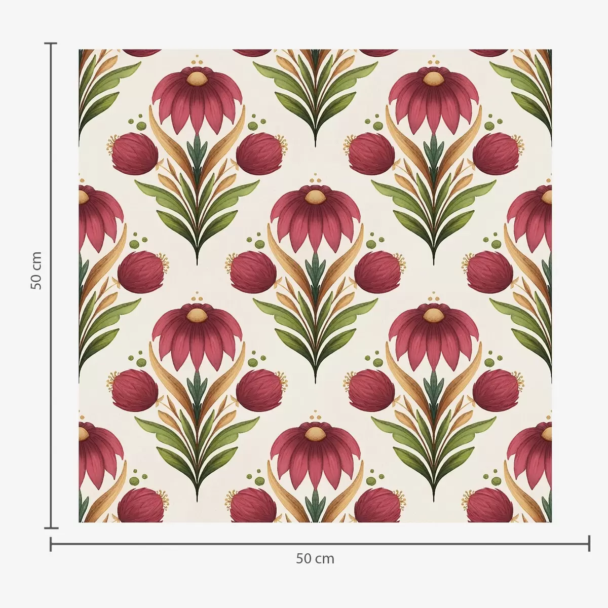 Carta da parati Ornamento floreale simmetrico nei ricchi toni del rosso e del verde Nr. a00812v4