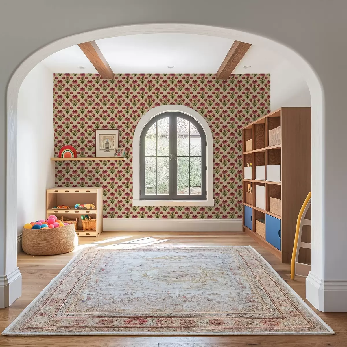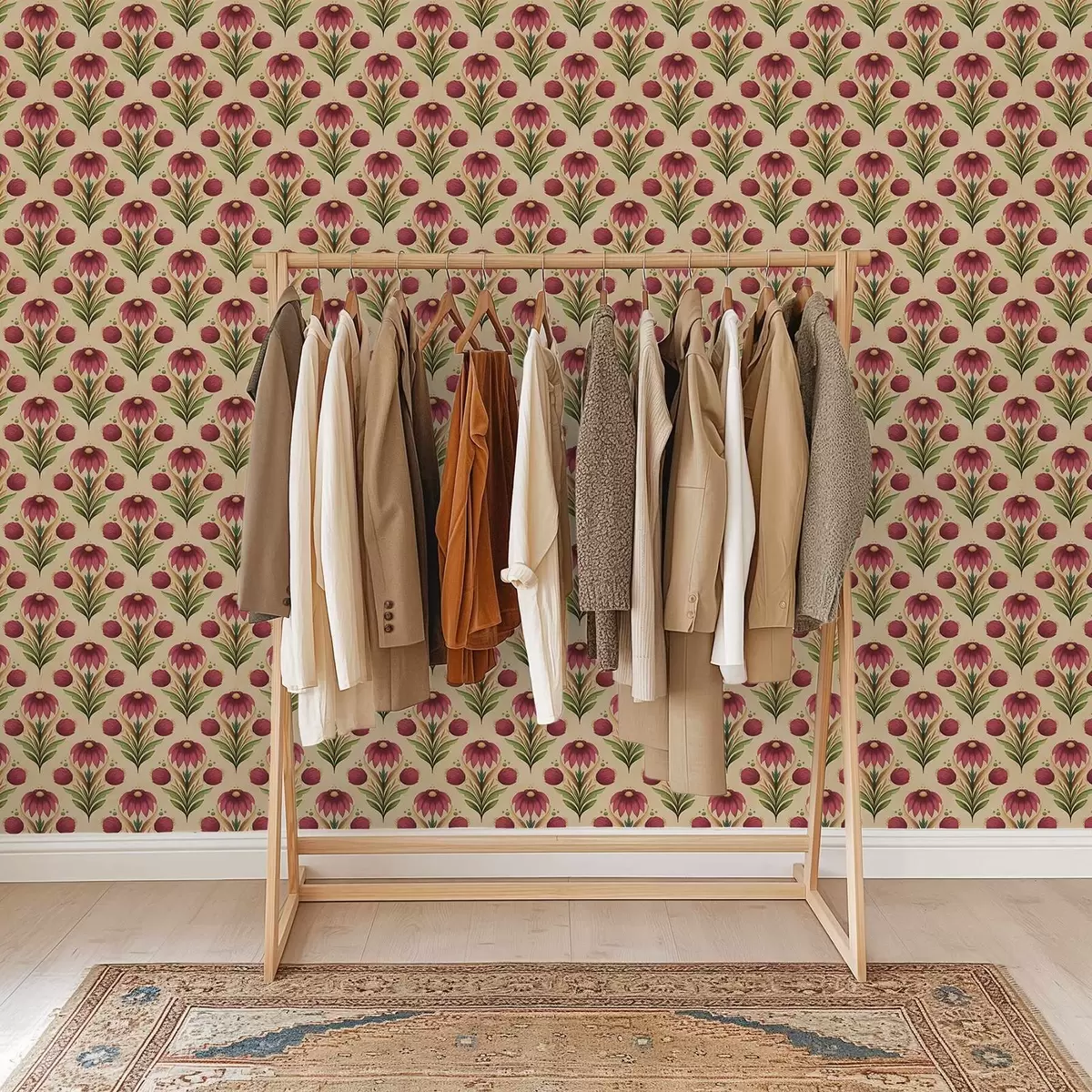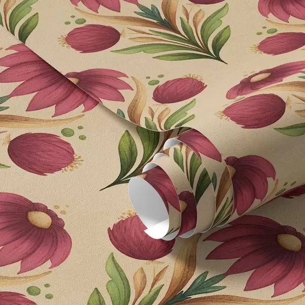 Carta da parati Ornamento floreale simmetrico su sfondo beige caldo Nr. a00812v6