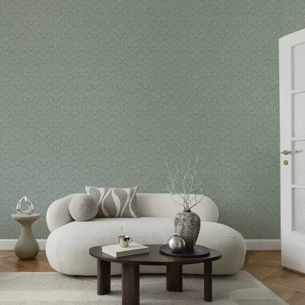 Carta da parati Damasco botanico su sfondo menta-oliva Nr. a00815