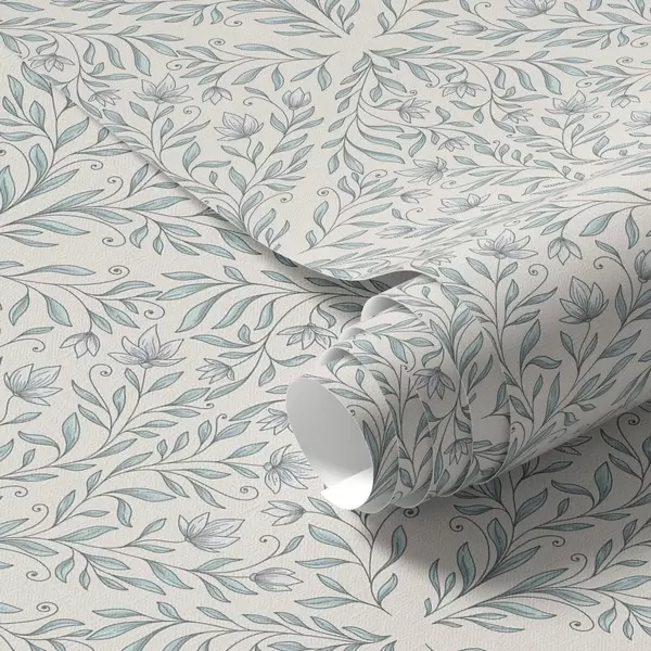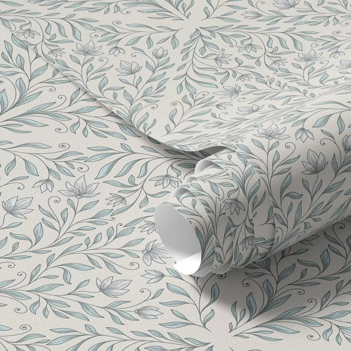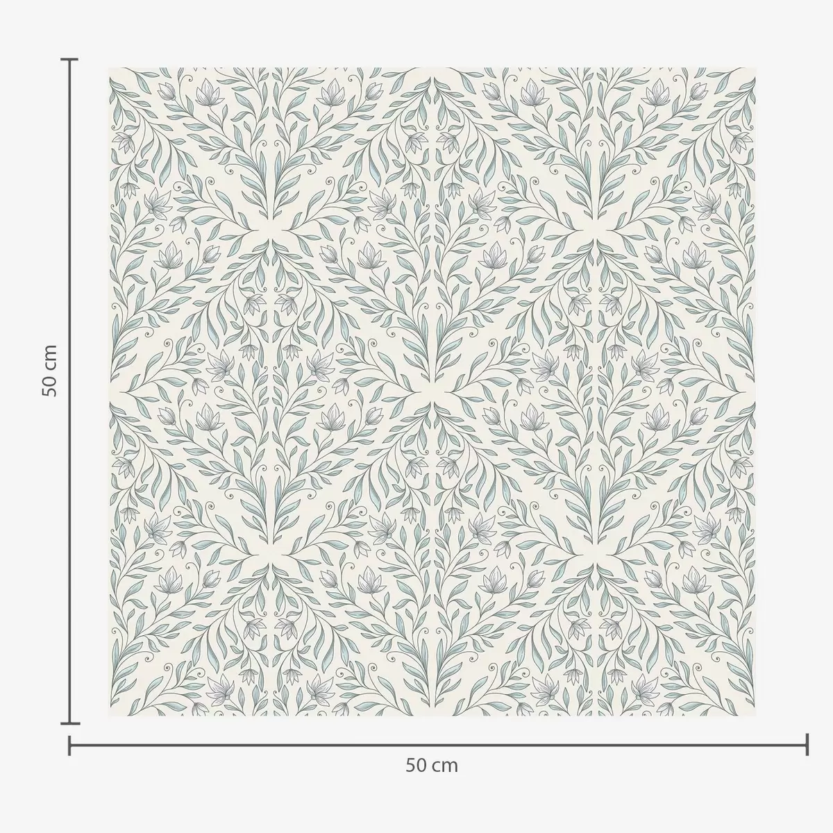 Carta da parati Lacy spara su sfondo bianco crema con contorno turchese Nr. a00815v4